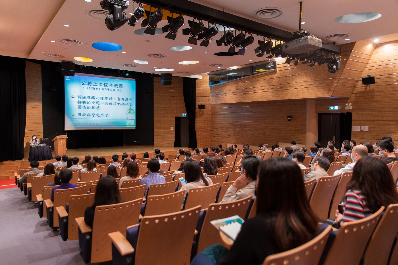 廉政公署代表詳細講解廉署職責、公職義務、刑事犯罪、迴避制度、公務侵佔、收受利益、兼職、舉報查詢等,並透過案例及相關短片,與人員討論於執行公務期間可能發生的違法行為,以及相關的刑罰。