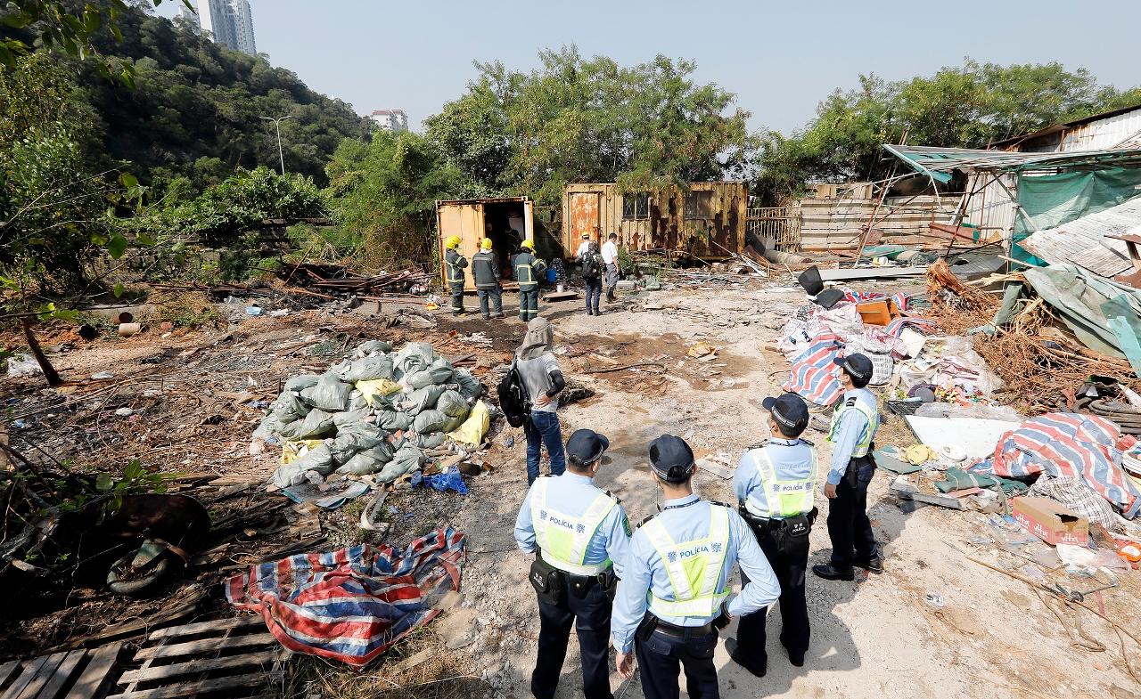 特區政府今日(11月24日)採取跨部門聯合清遷行動,騰空並收回位於氹仔史伯泰海軍將軍馬路及氹仔東北馬路旁合共約193,775平方米國有土地。