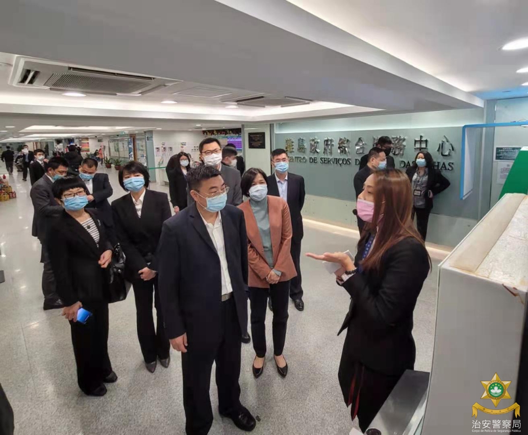代表團也到訪離島政府綜合服務中心,瞭解一站式服務及自助辦證服務,並與澳方人員交流最新的便民舉措。代表團同時也參觀了澳門大學及澳門保安部隊高等學校的教學環境和設施,瞭解學生的培訓及生活情況。