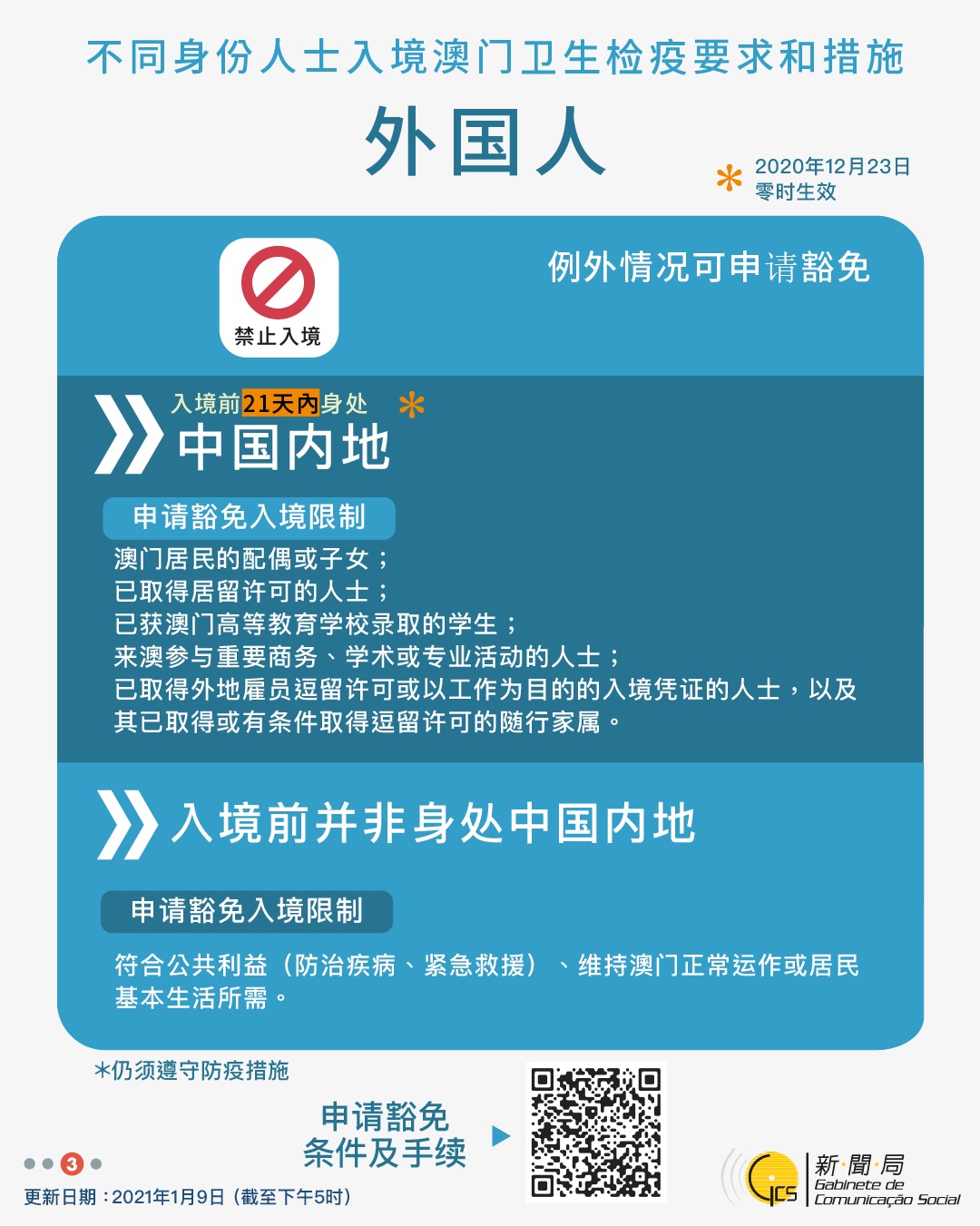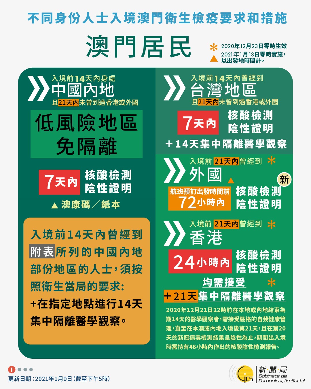 【圖文包】2021/01/09最新入境澳門衛生檢疫要求和措施
