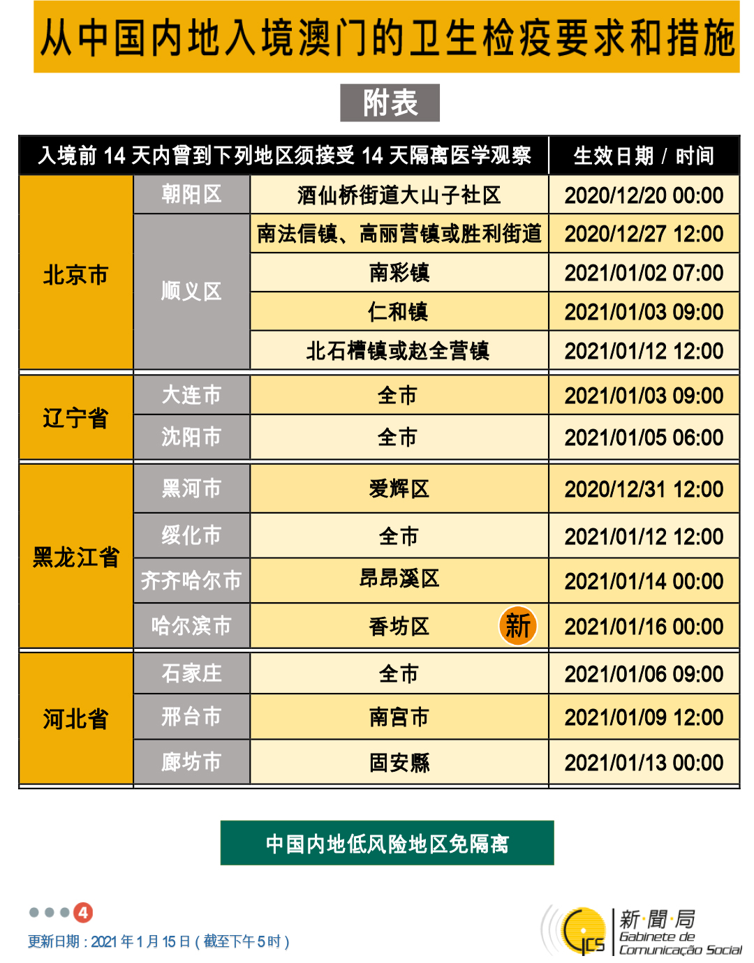 【圖文包】2021/01/15最新入境澳門衛生檢疫要求和措施