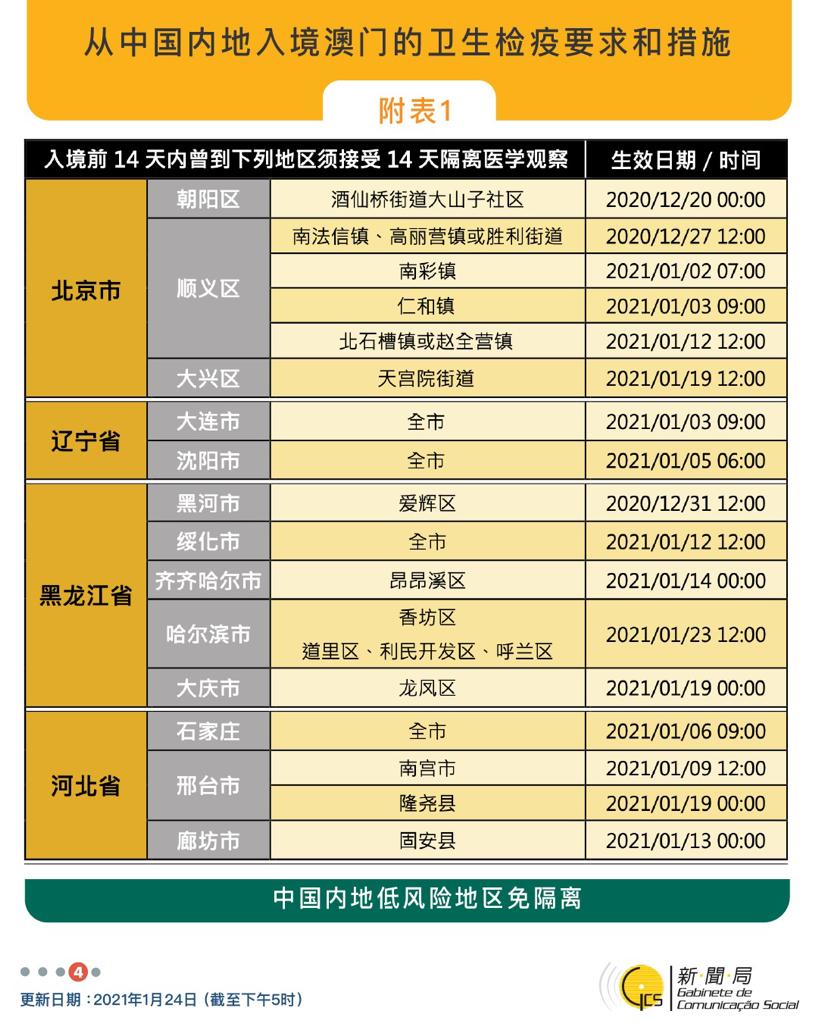 【圖文包】2021/01/24最新入境澳門衛生檢疫要求和措施