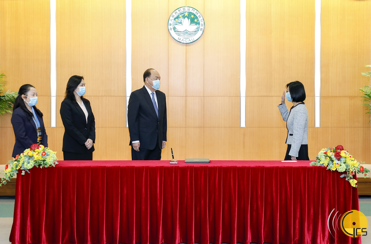 在行政長官賀一誠監誓下,政府總部事務局局長劉軍勵和副局長李月梅今(1)日下午在政府總部多功能廳宣誓就職。行政長官辦公室主任許麗芳見證。