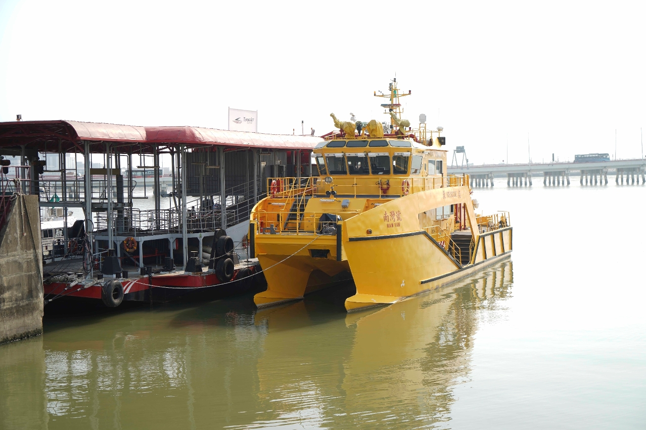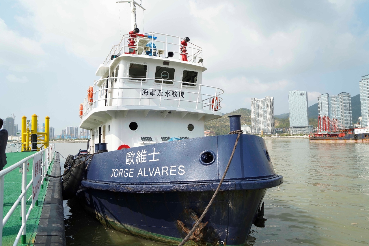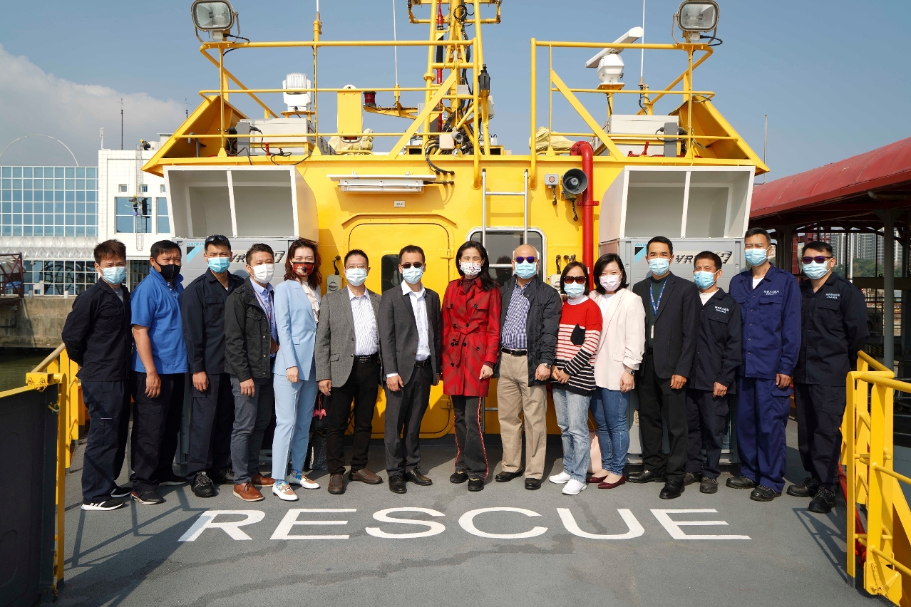 海事及水務局局長黃穗文與相關主管和同事今早(14日)到海上客運口岸、值勤設施和船舶及海事博物館巡視,並視察駐守的救援船隻和人員。