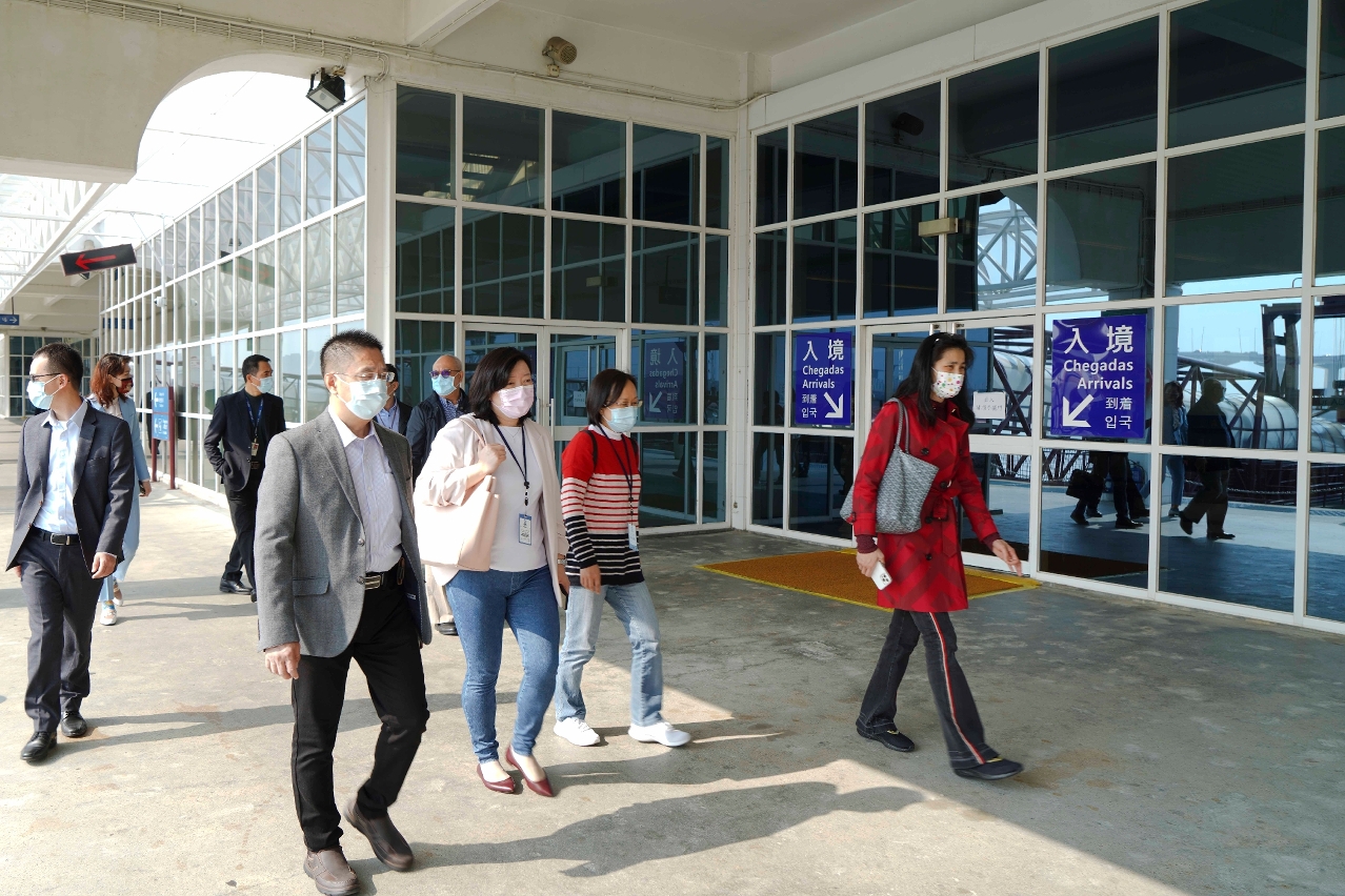 過去兩日假期經海路出入境的人數不多,各客運碼頭的通關情況順暢,秩序良好。黃穗文希望碼頭的保安人員配合衛生局和海關等部門,做好碼頭的疫情防控工作,同時要求外判公司繼續加強碼頭公共空間的清潔消毒。相關人員亦到位於外港碼頭的船舶交通管理中心巡視,了解船舶進出港及航道管理情況,並感謝海上交通控制人員在春節期間堅守崗位,保障澳門海域的船舶通航安全。