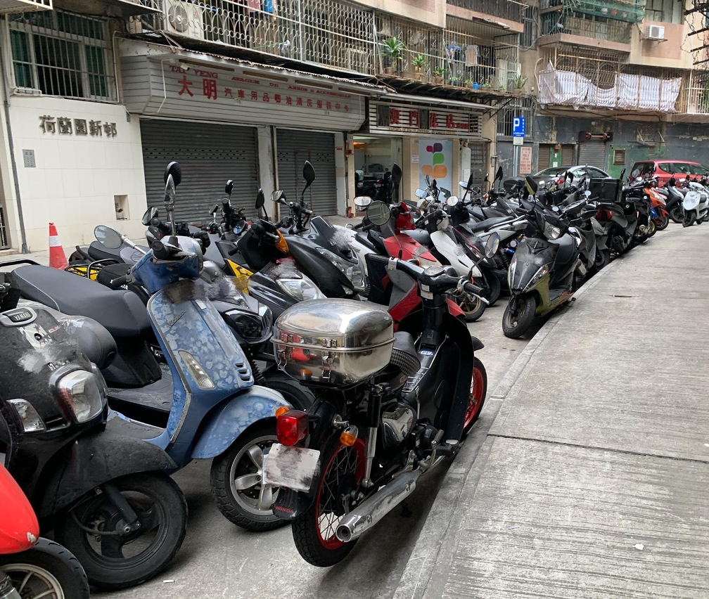 根據《道路交通法》規定,電單車駕駛者在停泊車輛時,須以垂直並列的方式停泊車輛,否則可被罰款300元。交通事務局會持續檢視及完善道路泊車設施,進一步理順泊車秩序。
