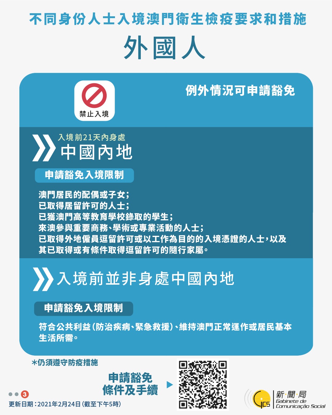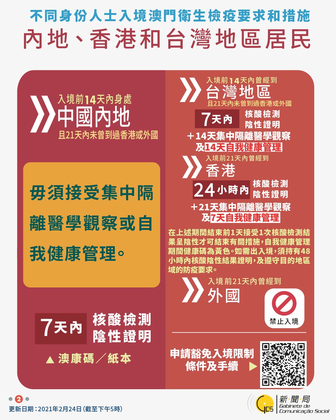 【圖文包】2021/02/24最新入境澳門衛生檢疫要求和措施