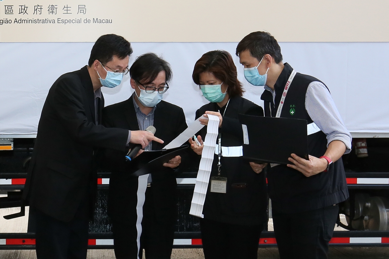 此批疫苗由北京以陸路經過30多小時運抵本澳,運輸過程得到了中聯辦、南光(集團)有限公司及相關部門的全力協助。在衛生局藥物事務廳稽查人員完成入口檢查手續後,南光集團張沛然副總經理移交國藥集團新型冠狀病毒滅活疫苗,由衛生局李展潤局長簽署接收疫苗文件,並由中聯辦宣傳文化部萬速成部長見證。