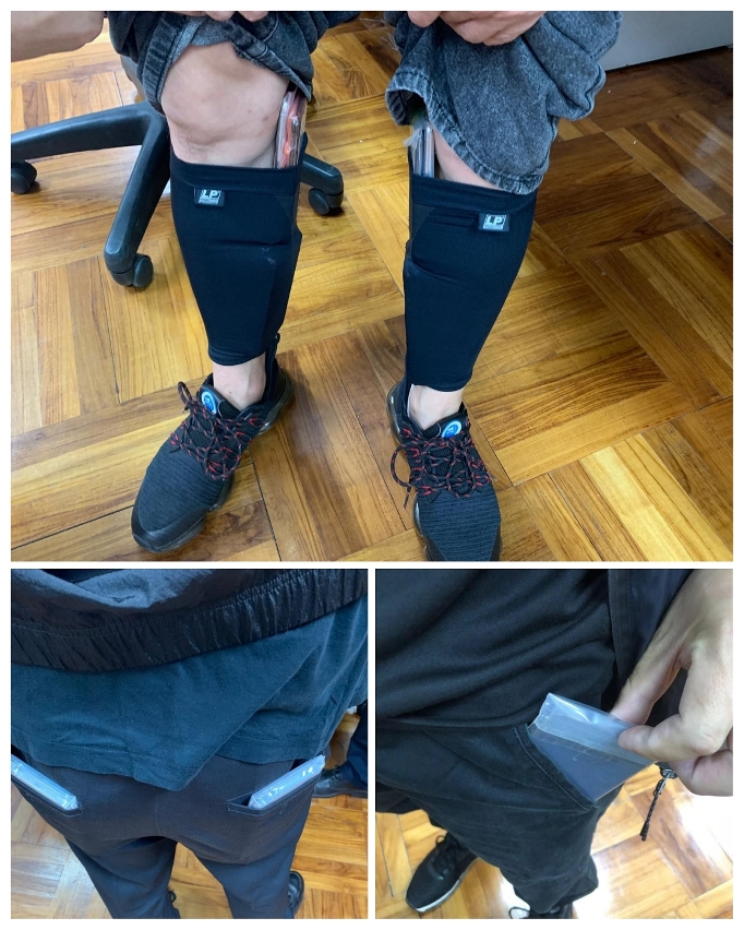 針對水客活動,海關持續加強對本澳各口岸旅客的關檢力度,全力打擊有關行為。本月2日,關員在關閘口岸旅客出境通道發現上述人士衣著寬鬆、走路姿勢有異樣,懷疑身藏物品偷運出境,遂截停有關人士作詳細檢查。期間,發現三人身上藏有多部手機,並利用運動彈力護套纏繞於腿上或以衣服作遮掩,企圖矇混過關,三宗個案查獲的手機合共36部。