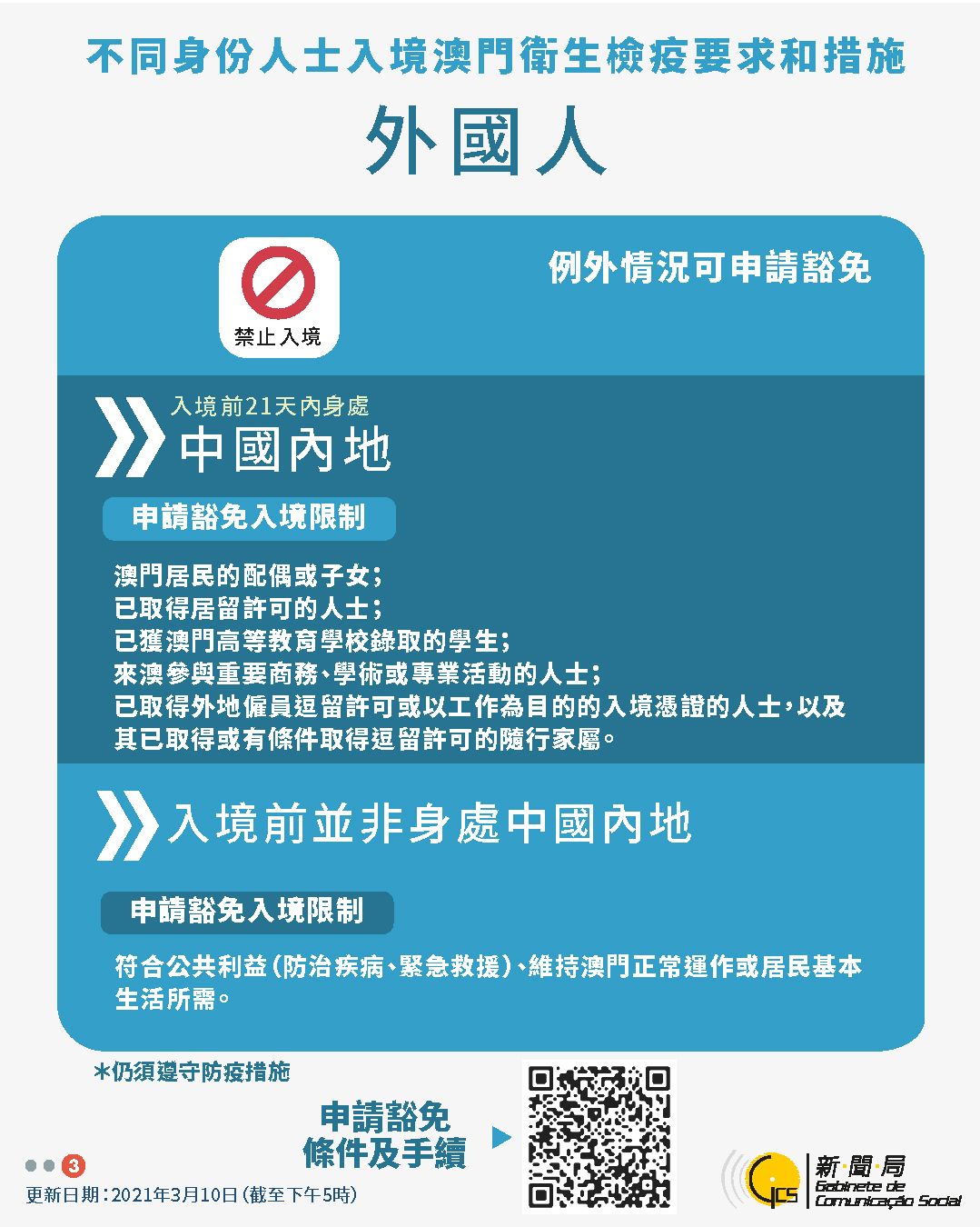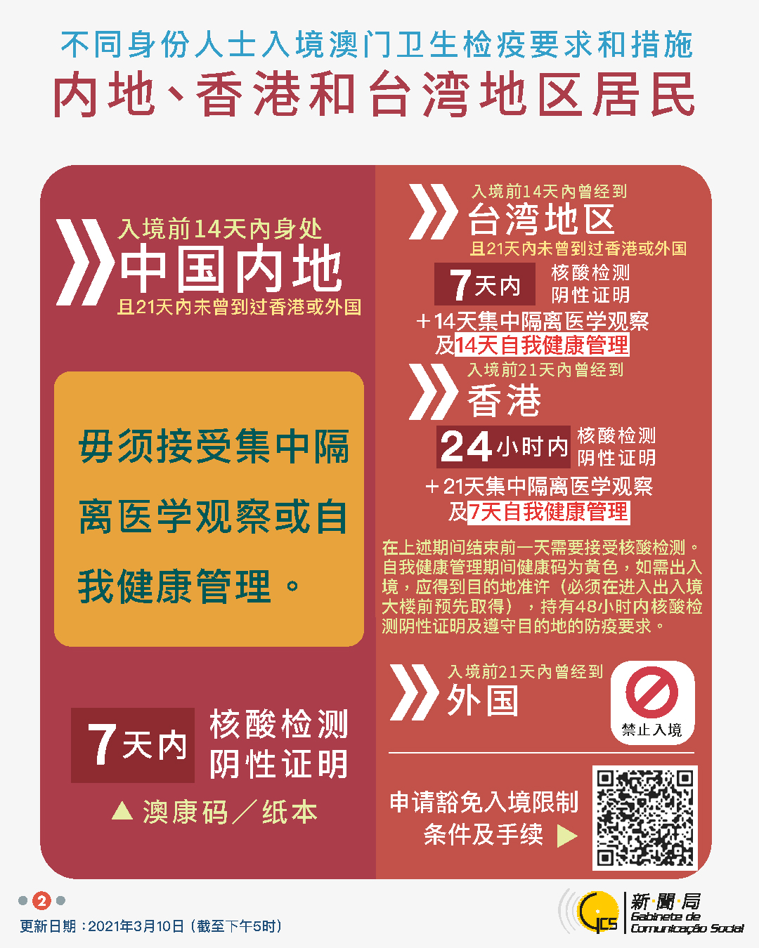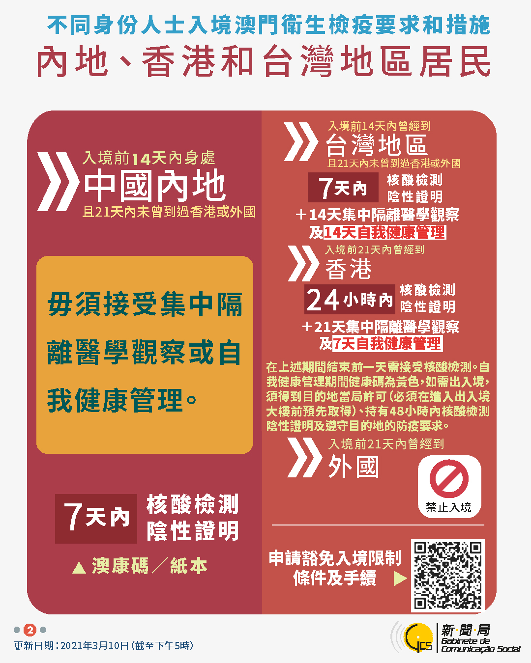 【圖文包】2021/03/10最新入境澳門衛生檢疫要求和措施