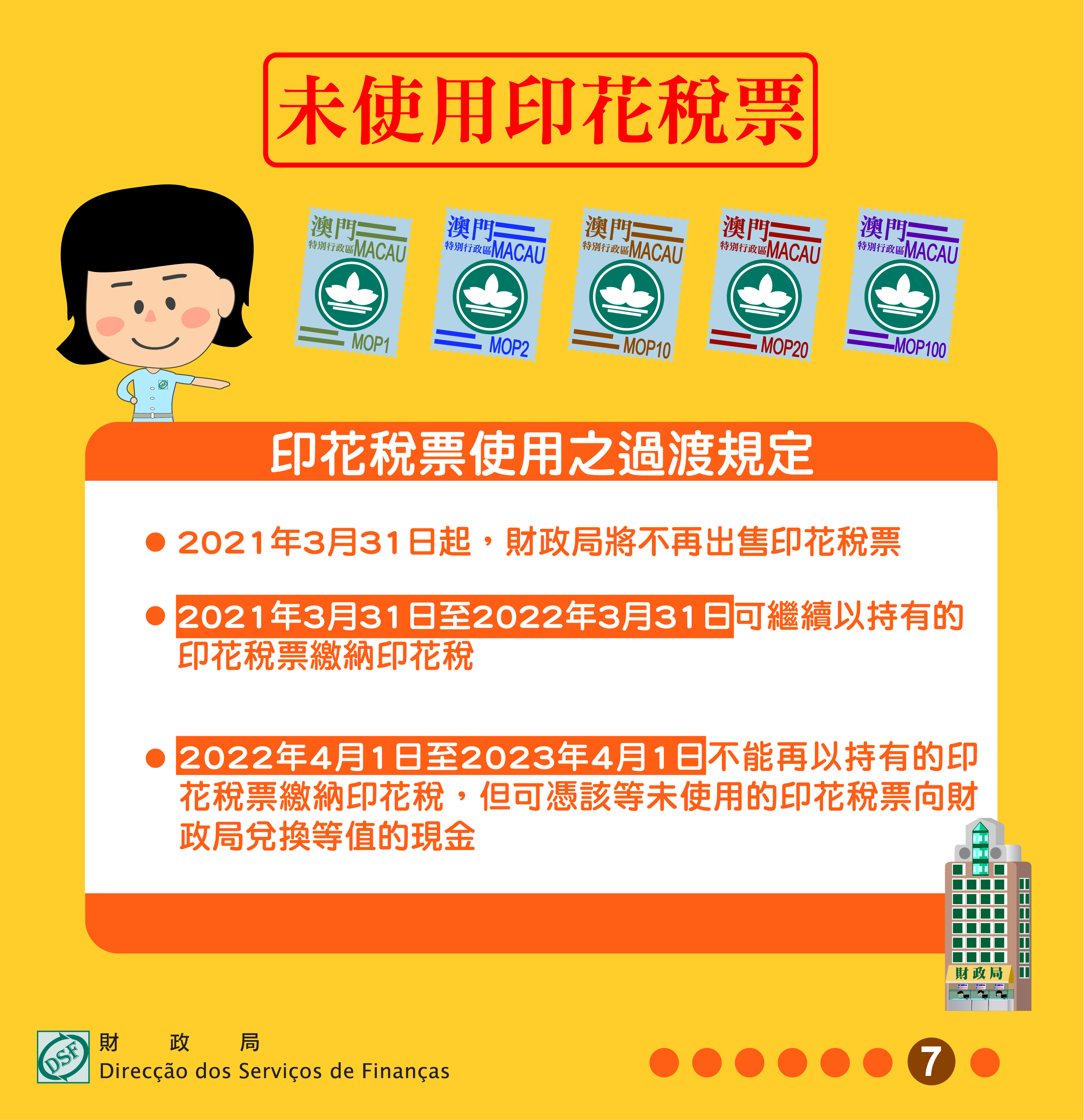第24/2020號法律《修改〈印花稅規章〉及〈印花稅繳稅總表〉》已於2020年12月30日刊登於《澳門特別行政區公報》,並自公佈後滿九十日起生效,即2021年3月31日正式生效,並由法律正式生效當天起,財政局不再出售印花稅票。