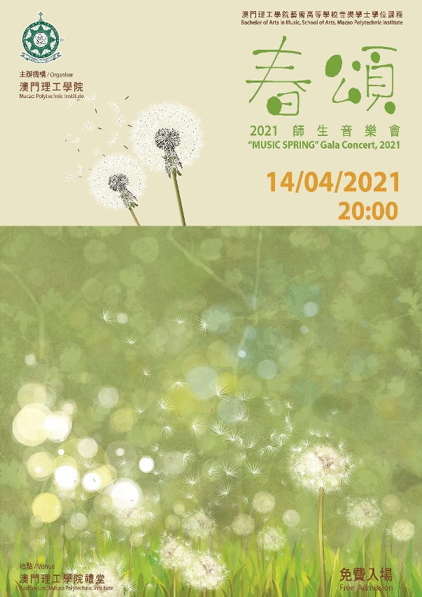 為向社會展示教學成果,分享音樂正能量,澳門理工學院將於4月14日晚上八時正,在該院禮堂舉行《春頌》師生音樂會,由音樂學士學位課程師生聯袂演出,以樂會友,呈獻歌頌春天、綻放青春的美妙樂章。