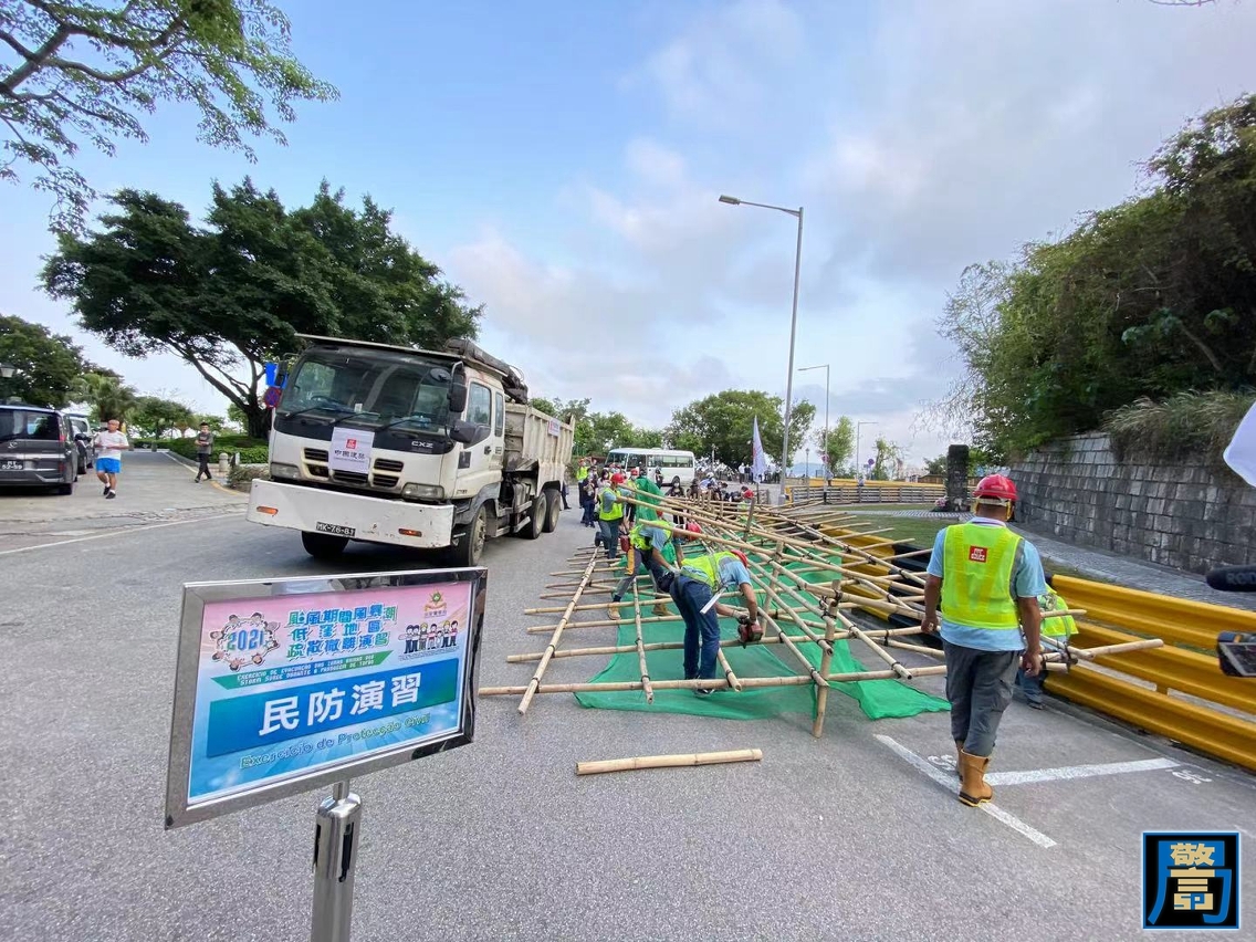 同時,演習亦設置了多項模擬突發事故情景,包括:颱風期間危險品貨運車交通事故、低窪地區居民拒絕撤離、狹窄街道拯救、船隻火警、西灣大橋下層隧道交通事故、緊急供水調度、搖搖欲墜之窗戶處理、移除倒塌的建築棚架、清除路障及疏通幹道等,從各項實際操作中檢視民防架構成員的應急預案及執行能力。