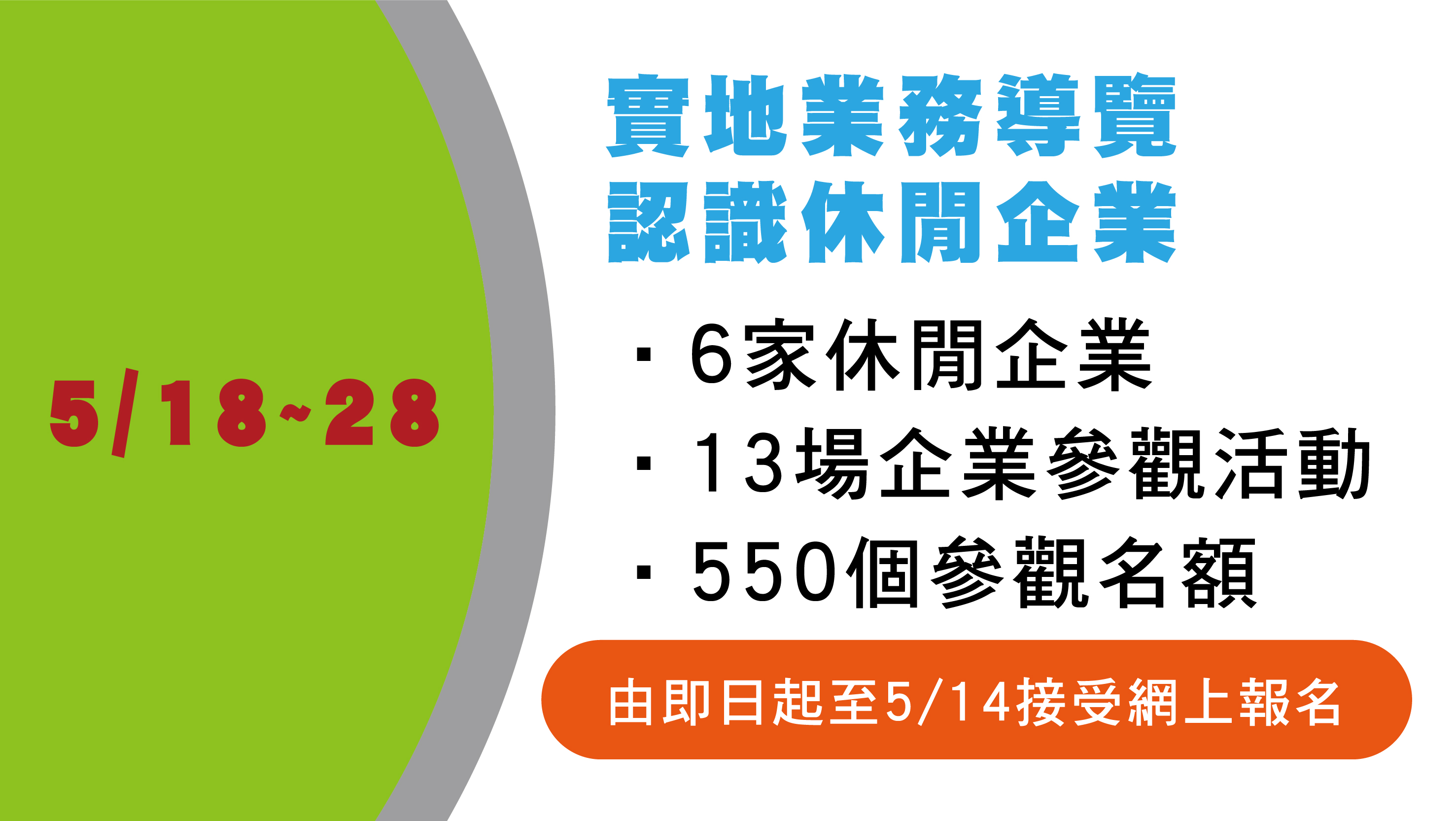 活動定於本年5月18至28日期間舉行,報名由即日起至5月14日接受網上報名,額滿即止,參加資格為澳門居民且為2021年應屆高校畢業生,每人最多可報兩家不同的企業;每間企業只可選一個場次,填報及遞交的資料經核實後,符合資格者會收到確認參加資格的短訊,名額有限額滿即止。有意參加可登入以下活動專頁連結報名,如有查詢,可致電勞工局雷先生8399 9903或