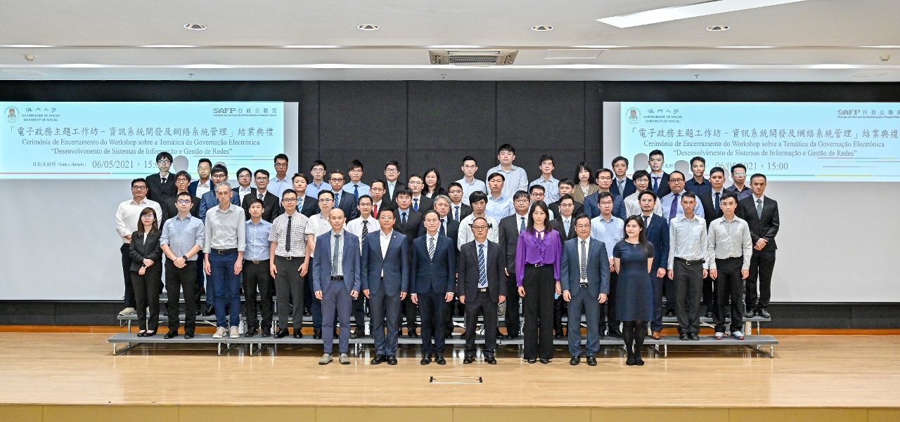 為期六個月的首屆《電子政務主題工作坊——資訊系統開發及網絡系統管理》於澳門大學圖書館舉行結業典禮,由澳門大學校長宋永華和行政公職局局長高炳坤分別向學員頒發結業證書。