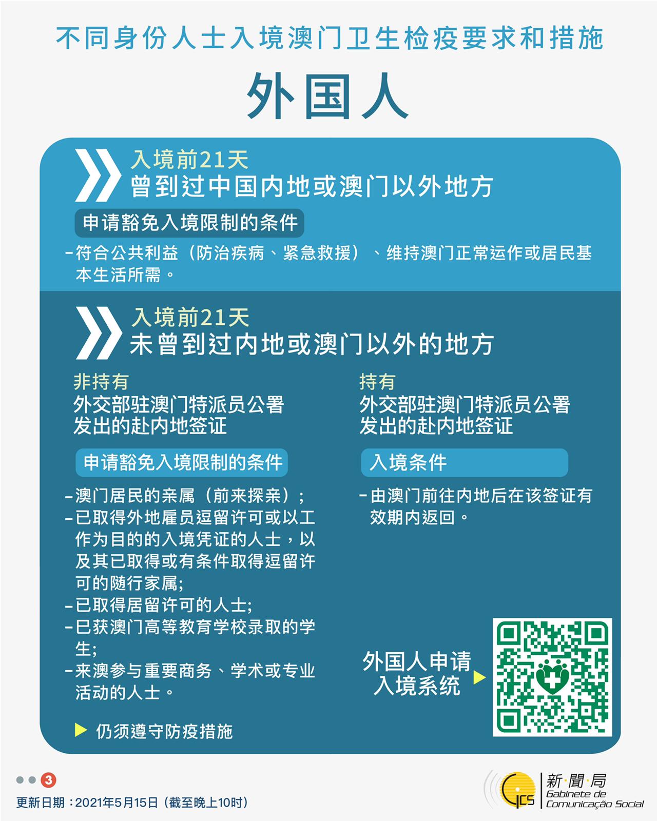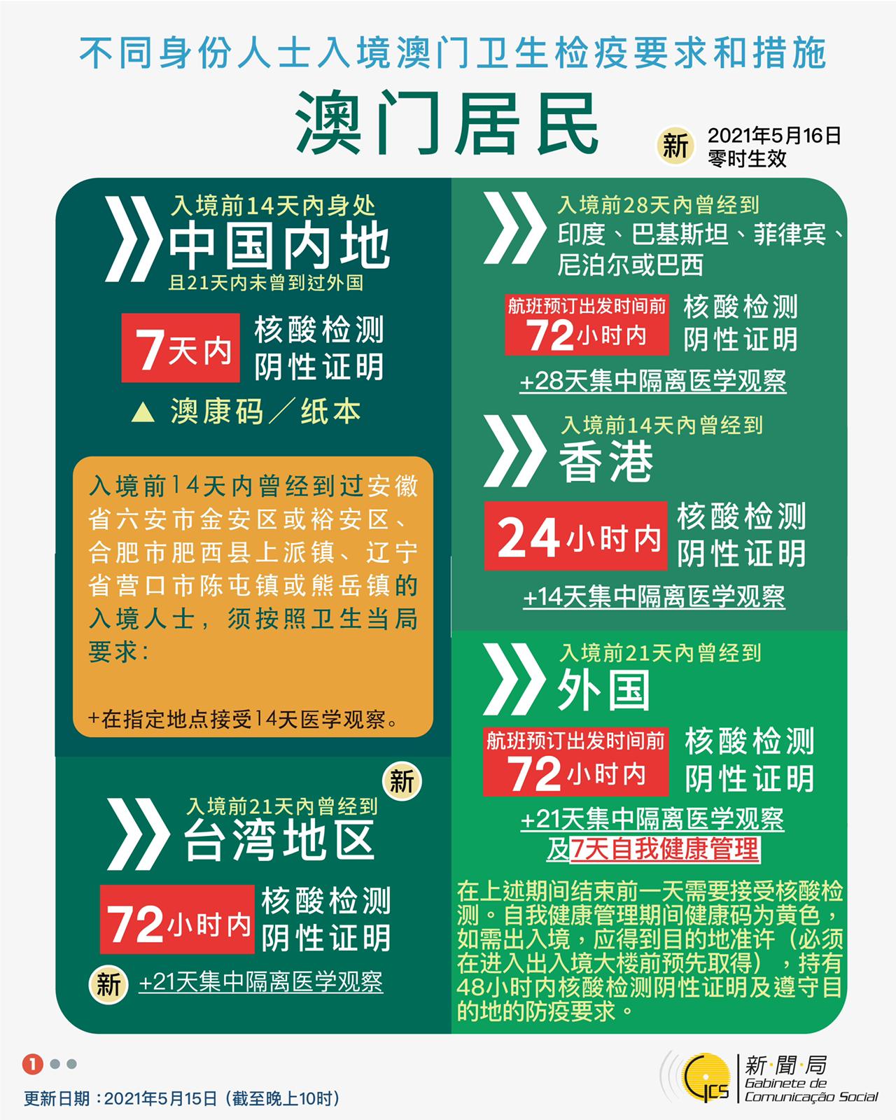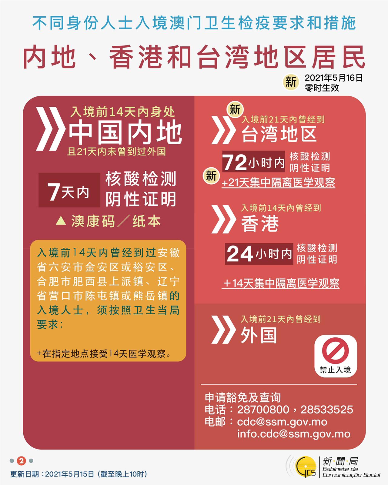 【圖文包】2021/5/16最新入境澳門衛生檢疫要求和措施