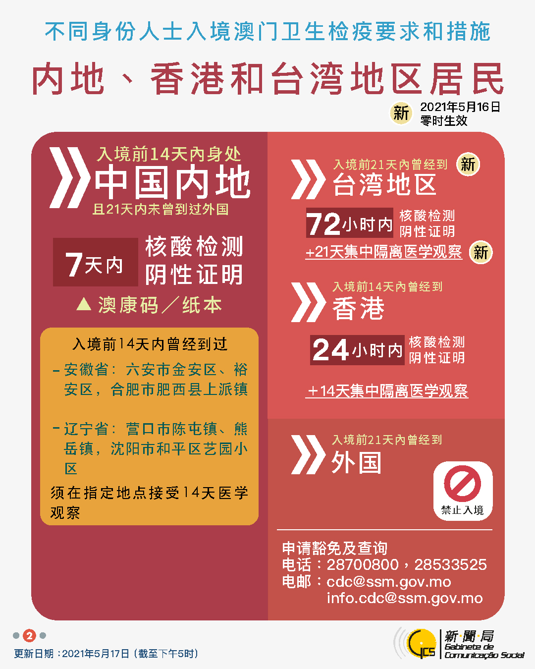 【圖文包】2021/5/17最新入境澳門衛生檢疫要求和措施