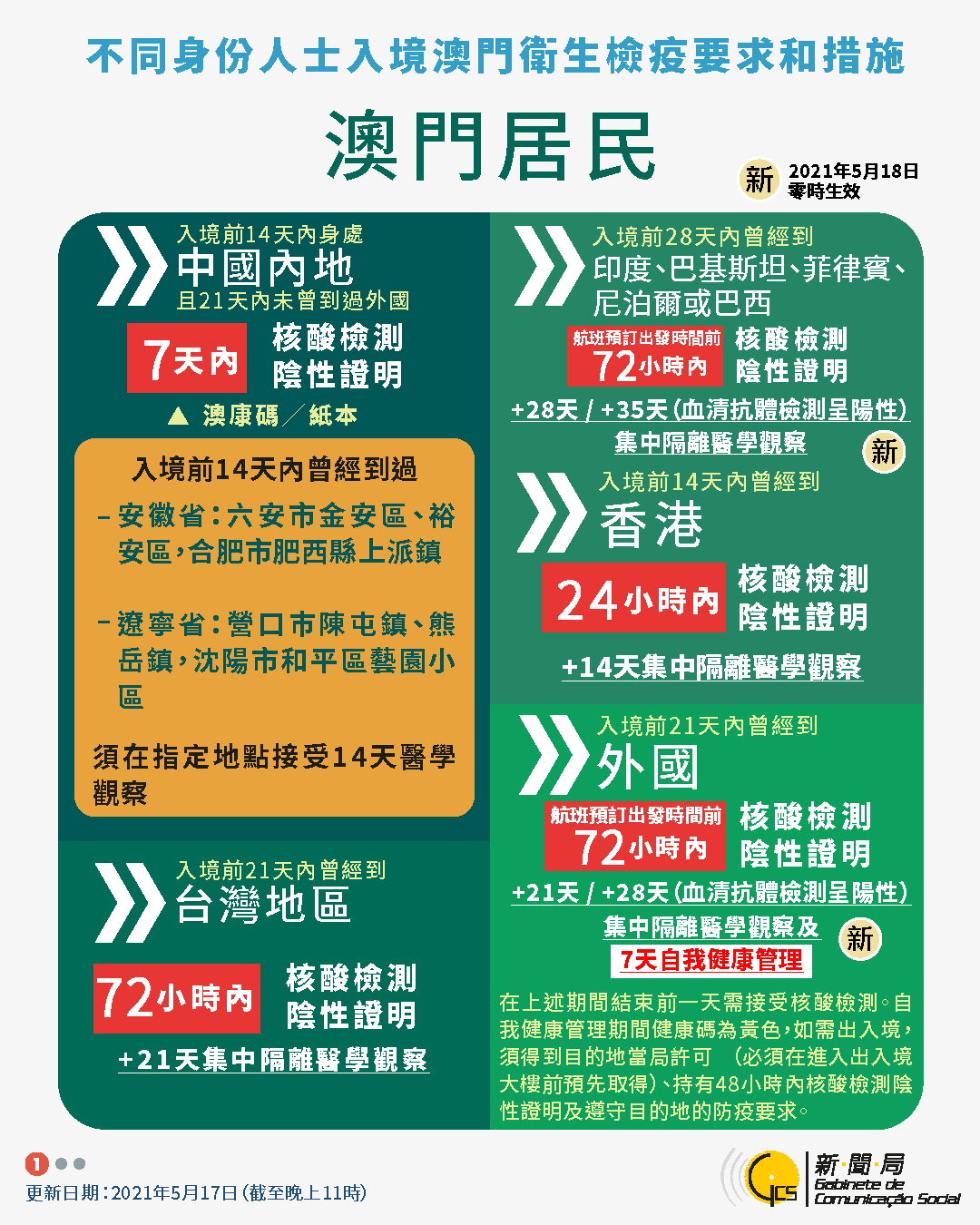 【圖文包】2021/5/17最新入境澳門衛生檢疫要求和措施