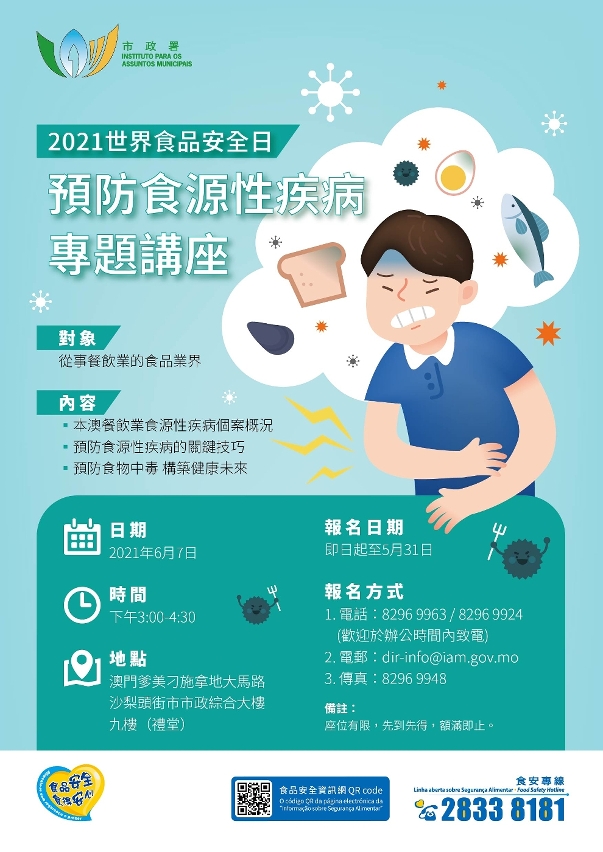為響應“世界食品安全日”,市政署將於六月七日舉辦“預防食源性疾病”專題講座,邀請專家學者講授及分析本澳食源性疾病個案發生的成因、常見食安問題與改善建議,歡迎餐飲業界踴躍報名參加。