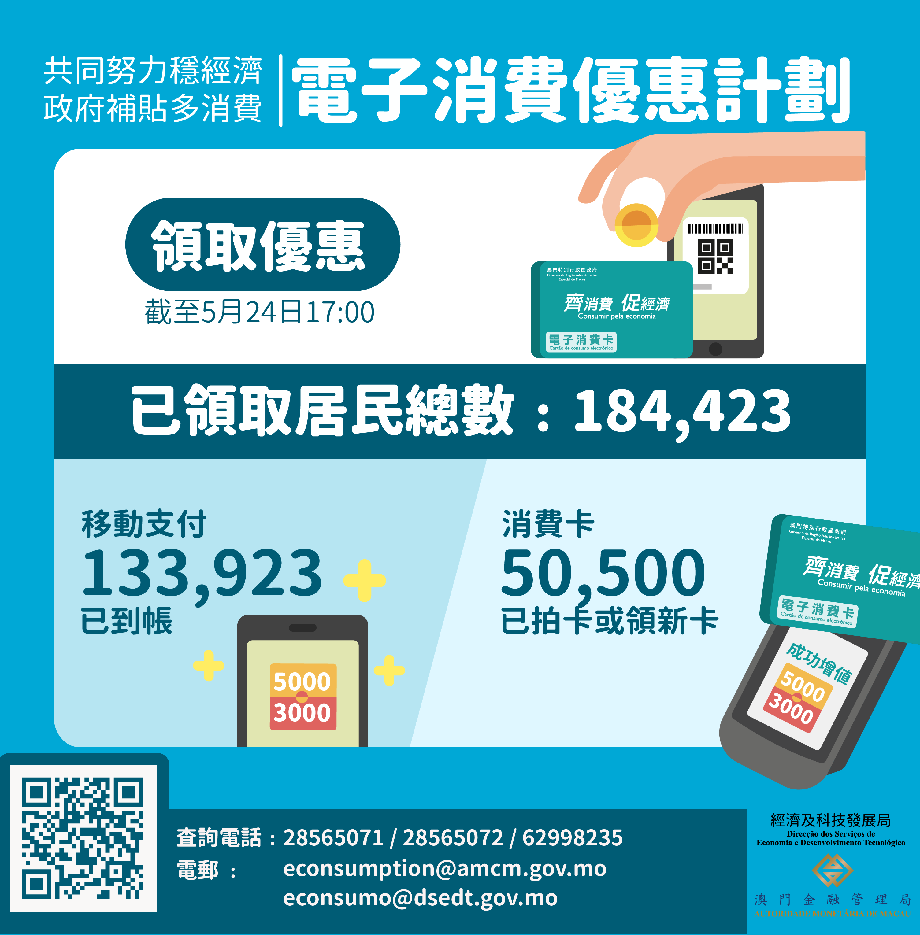 此外,經科局及金管局已協調八家金融機構今日推出“電子消費優惠使用教學視頻”,演示消費付款、查詢餘額或交易詳情等各項功能及步驟。同時,製作圖文包匯集視頻連結,並更新計劃專頁(https://www.dsedt.gov.mo/econsumo/zh_TW/cst_tutorials.jsp)及優化版面配置,方便選擇移動支付的居民瞭解。