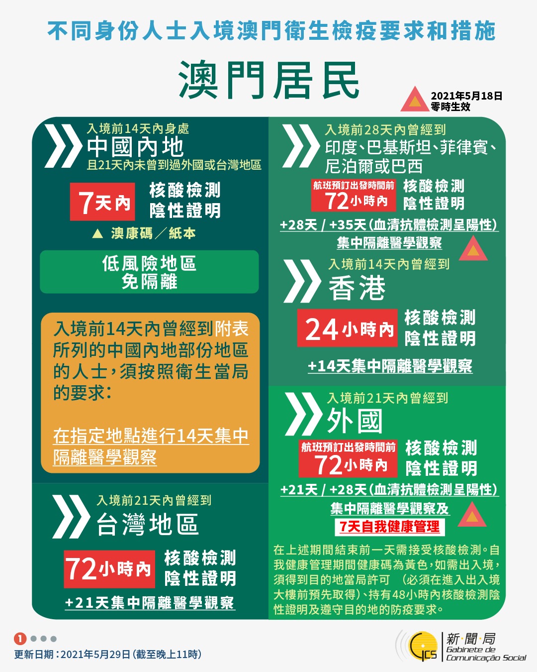 【圖文包】2021/5/29最新入境澳門衛生檢疫要求和措施
