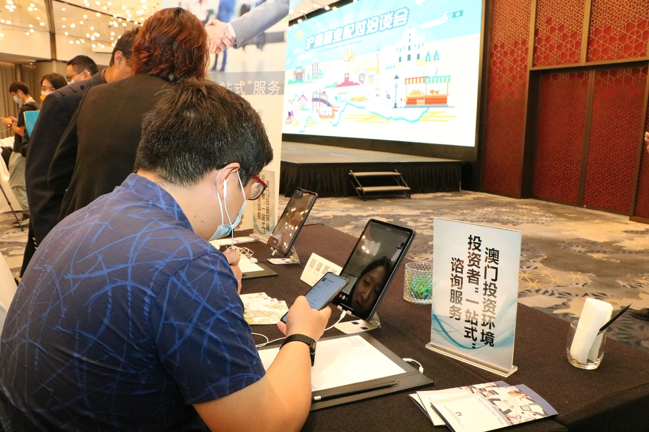 洽談會上,貿促局代表向與會者推介澳門投資環境及貿促局服務。場內澳門企業展示產品並設試飲試食,同時安排在澳營商的視像諮詢服務,為有需要的客商提供線上即時解答。場內合共接獲16宗線上線下投資者“一站式”服務查詢,內容涉及在澳開設資產管理、紅酒進口、旅行社、舉辦大型活動、化工材料加工、進口壓片機、絲綢貿易等業務,以及澳門營商環境等。