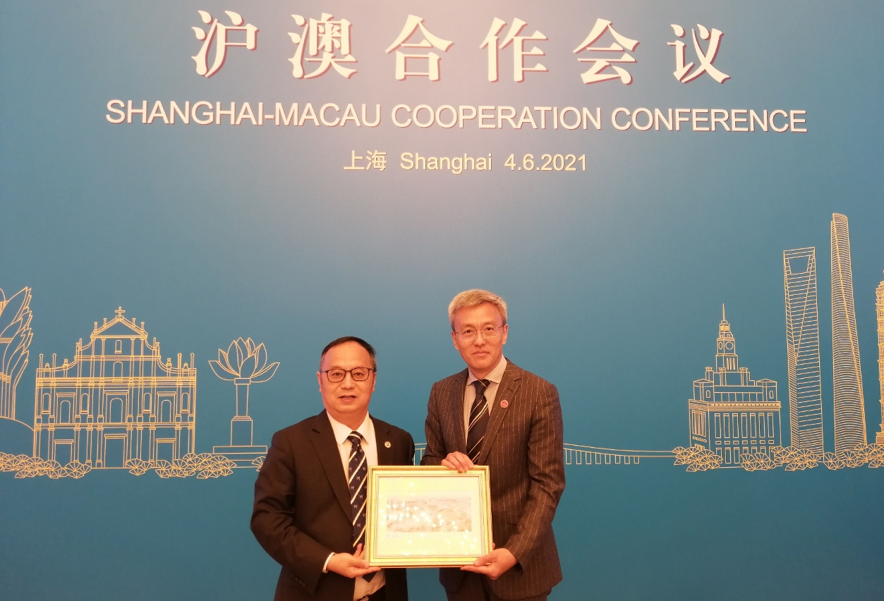 在澳門特別行政區行政長官賀一誠、上海市市長龔正、國務院港澳辦副主任黃柳權、中央人民政府駐澳門特別行政區聯絡辦公室副主任姚堅、上海市副市長宗明、澳門經濟財政司司長李偉農、澳門社會文化司司長歐陽瑜和上海市秘書長馬春雷的見證下,澳門大學校長宋永華與上海國際問題研究院院長陳東曉代表簽署協議書。
