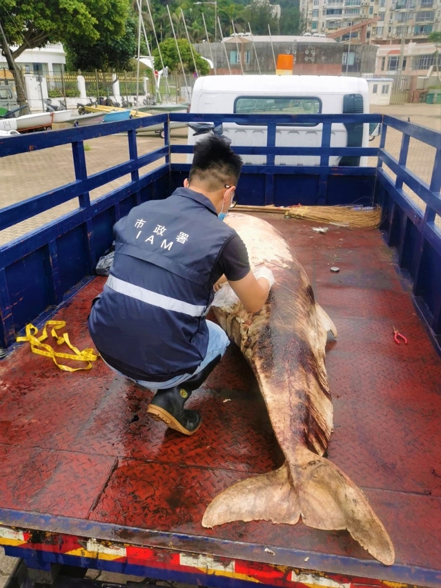 市政署今日(六月五日)上午接報,於黑沙水上活動中心附近發現一具海豚屍體,經初步鑑定為中華白海豚。