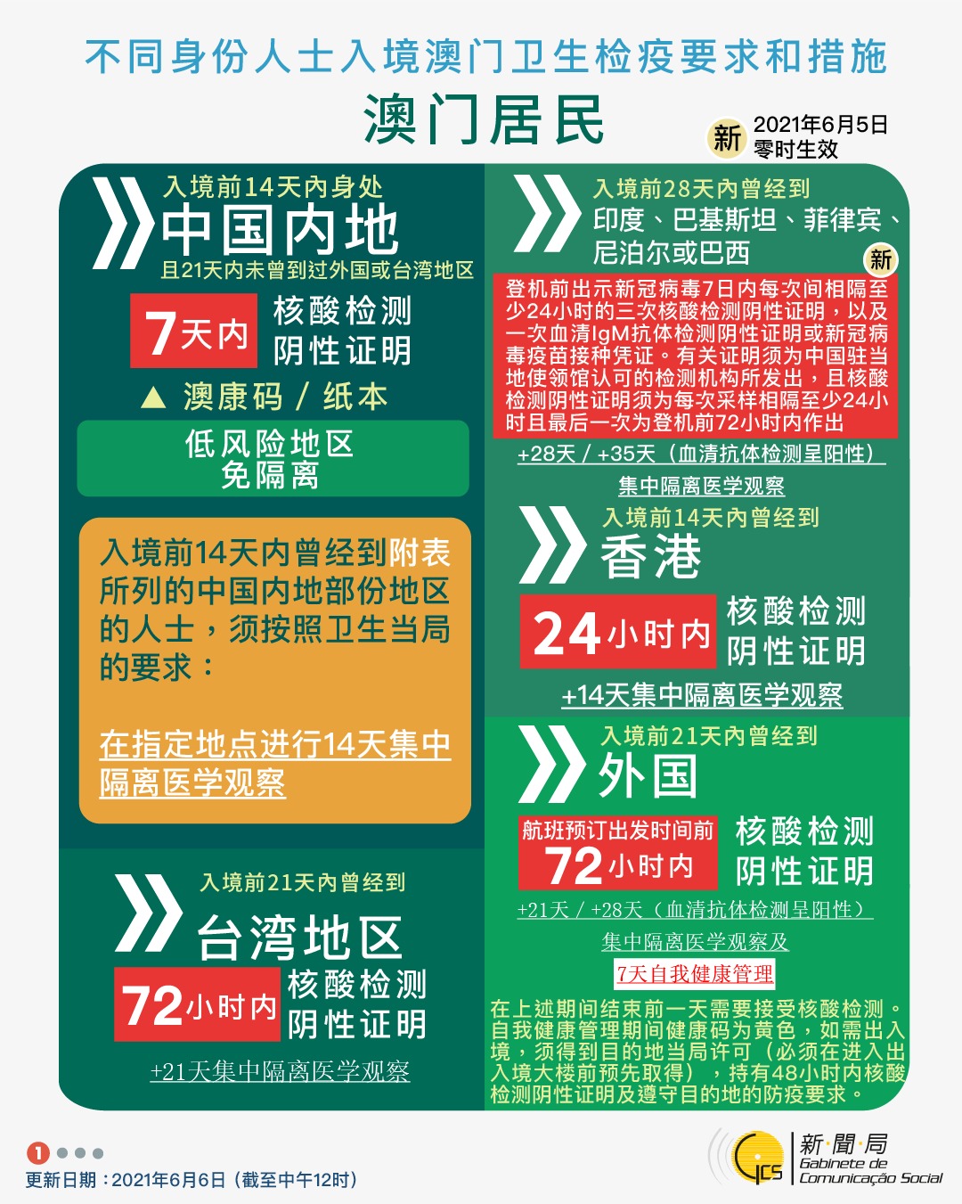 【圖文包】2021/6/6最新入境澳門衛生檢疫要求和措施
