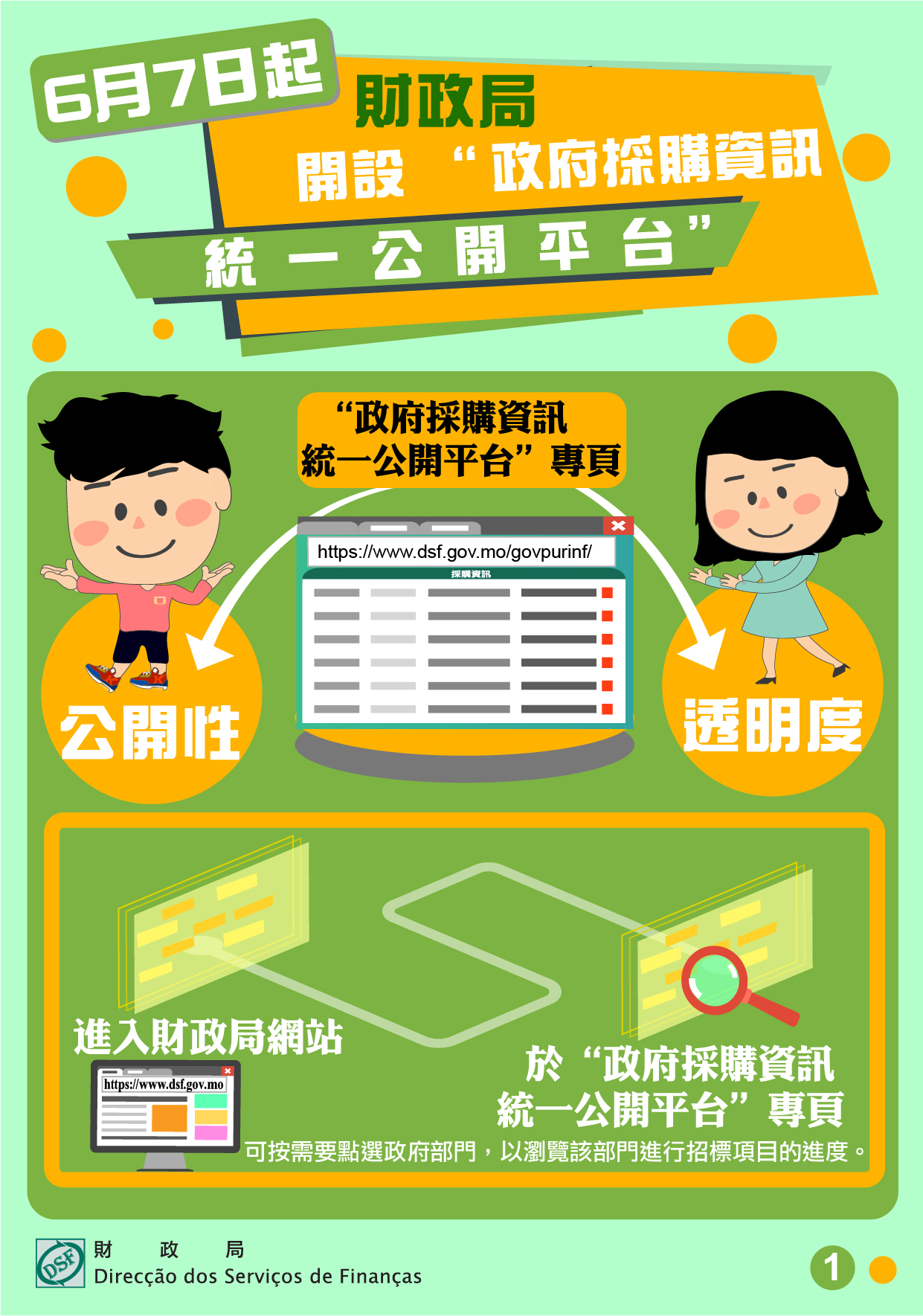 為進一步提升政府採購資訊的公開性和透明度,財政局整合各政府部門採購資訊,自6月7日起,在財政局網站以專頁形式設立 “政府採購資訊統一公開平台”,方便公眾查閲及監督。