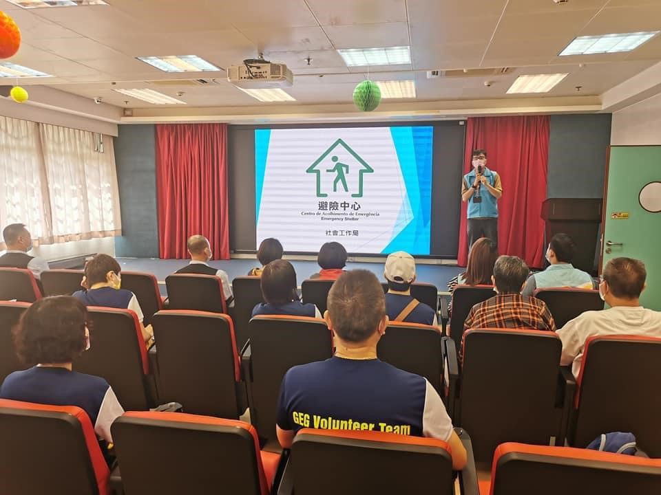 此外,社會工作局向受資助的社服設施、全澳的中小學及幼稚園、政府部門等,派發避險中心開放機制宣傳海報及單張;並聯同警察部門於各區持續進行疏散撤離社區宣傳工作;以及開展避險中心前線工作人員培訓工作等。