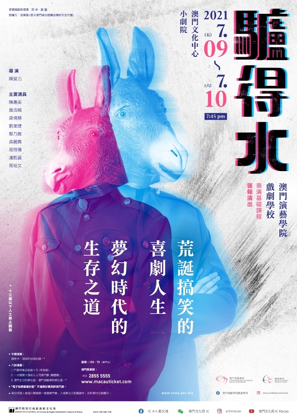 文化局轄下澳門演藝學院戲劇學校將於7月9日(星期五)及10日(星期六)晚上7時45分假澳門文化中心小劇院演出喜劇《驢得水》,門票於6月9日起在澳門售票網發售,喜愛戲劇的市民萬勿錯過。