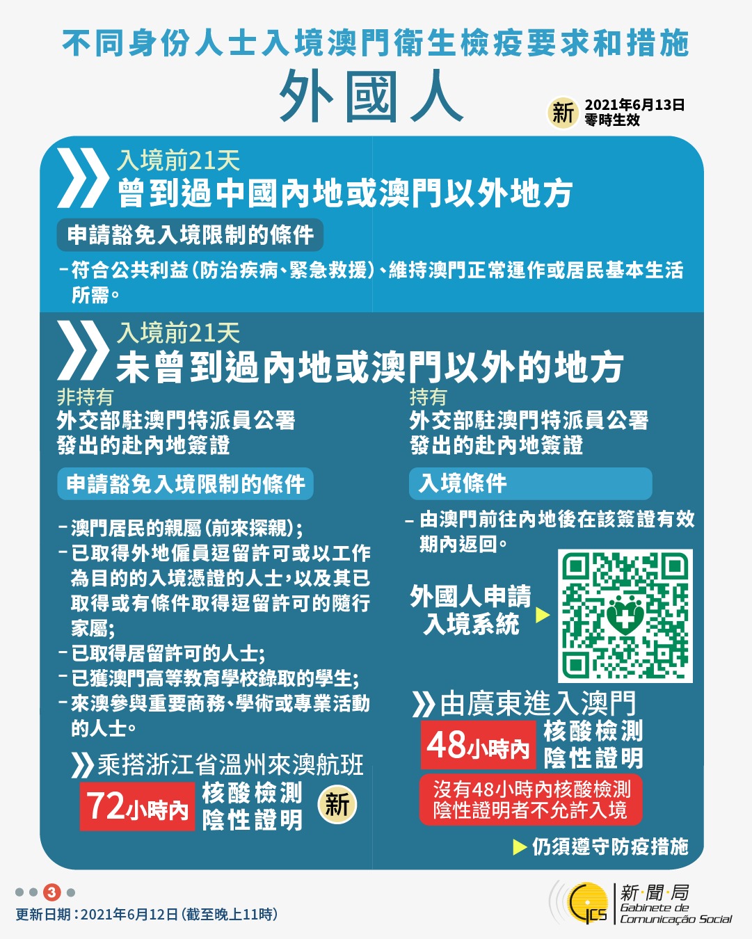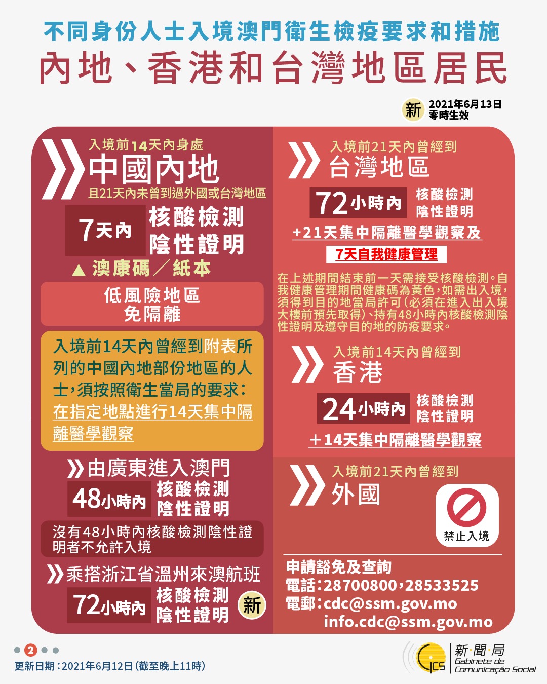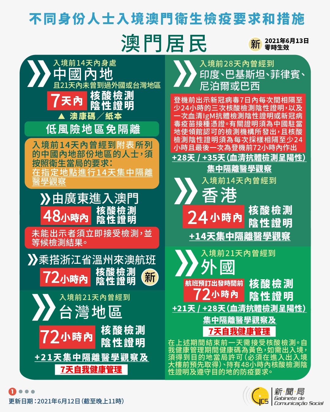 【圖文包】2021/6/12最新入境澳門衛生檢疫要求和措施
