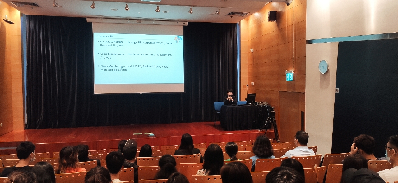 第三場講座的嘉賓是公關傳訊總監錢盈女士。錢女士從實踐的角度出發,為同學講解了關於公關傳訊部的架構,並闡述了企業公關部與酒店公關部的區別及職責,同時亦介紹了公關部與市場推廣部的合作項目。她特別提到,不管外在因素如何,公關部人員須保持其專業性,以維持企業的正面形象。