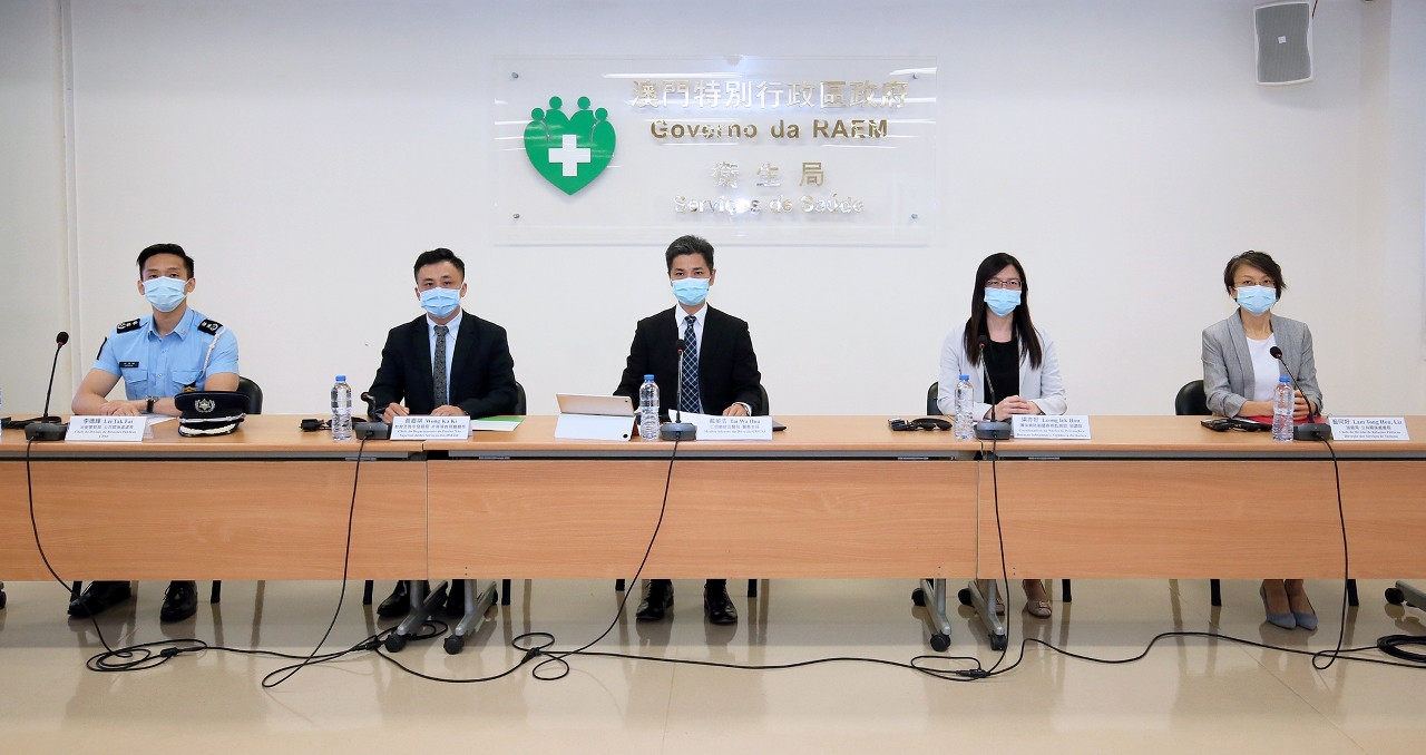 新型冠狀病毒感染應變協調中心(下稱應變協調中心)於今(16)日舉行例行記者會,仁伯爵綜合醫院戴華浩醫務主任、教育及青年發展局非高等教育廳黃嘉祺廳長、旅遊局公共關係處藍同好處長、治安警察局公共關係處李德輝處長、疾病預防控制中心傳染病防制暨疾病監測部梁亦好協調員共同會見傳媒。