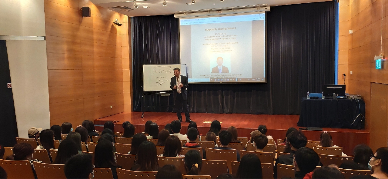 澳門旅遊學院酒店管理學校組織以 “酒店人的「匠心精神」”為題的分享會,由鄭文良先生擔任主講嘉賓。鄭文良先生從事酒店行業四十餘年,有著豐富的行業經驗。自2006年起,他一直擔任澳門麗景灣藝術酒店總經理一職。在此之前也曾在多家國際知名酒店擔任要職,如希爾頓酒店、香格里拉酒店、洲際酒店集團等。分享會吸引了衆多學生參加,講座上嘉賓與學生進行了熱烈的互動與交流。
