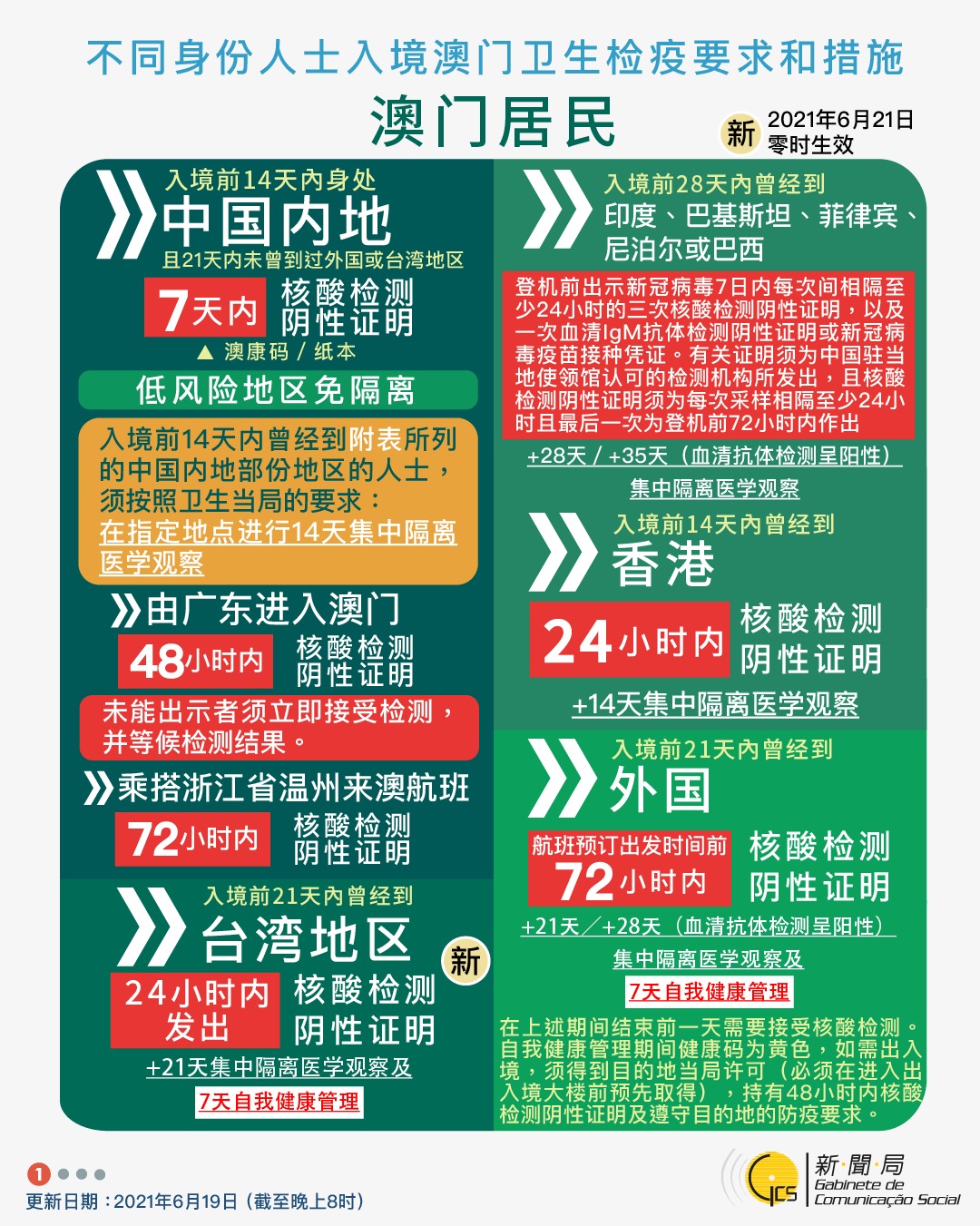 【圖文包】2021/6/19最新入境澳門衛生檢疫要求和措施