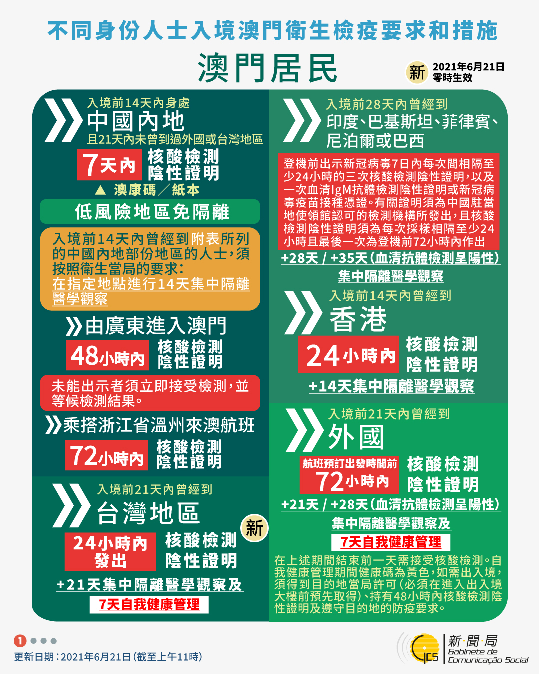 【圖文包】2021/6/21最新入境澳門衛生檢疫要求和措施