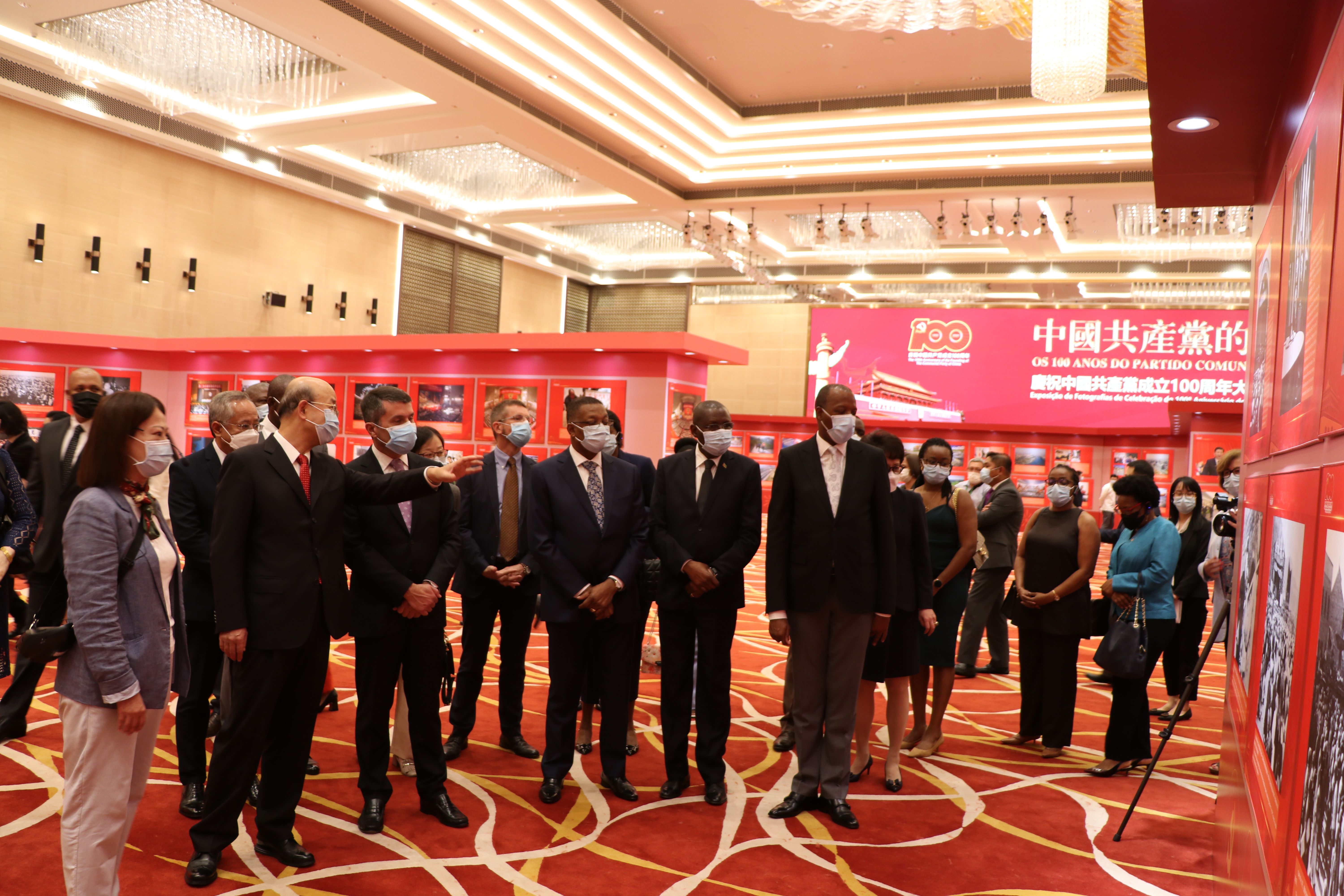 2021年7月12日下午,外交公署劉顯法特派員夫婦邀請外國駐澳總領事和國際機構負責人參觀“中國共產黨的100年——慶祝中國共產黨成立100周年大型主題圖片展”。莫桑比克總領事馬爾克斯、葡萄牙總領事歐冠溢、菲律賓總領事馬榮、安哥拉總領事賈理路,中葡論壇常設秘書處副秘書長贊東、莫桑比克代表範詩雅、佛得角代表米格爾、葡萄牙代表布思麗、幾內亞比紹代表馬立文、聖多美和普林西比代表施蒙格,聯合國大學軟件研究所所長黃京波、臺風委員會秘書長喻紀新,愛沙尼亞名譽領事廖澤雲、幾內亞比紹名譽領事陳明金、佛得角名譽領事周錦輝、尼日爾名譽領事蔣默涵、英國名譽領事Glenn James McCartney及部分家屬共60餘人應邀參加。公署副特派員王冬等陪同參觀。