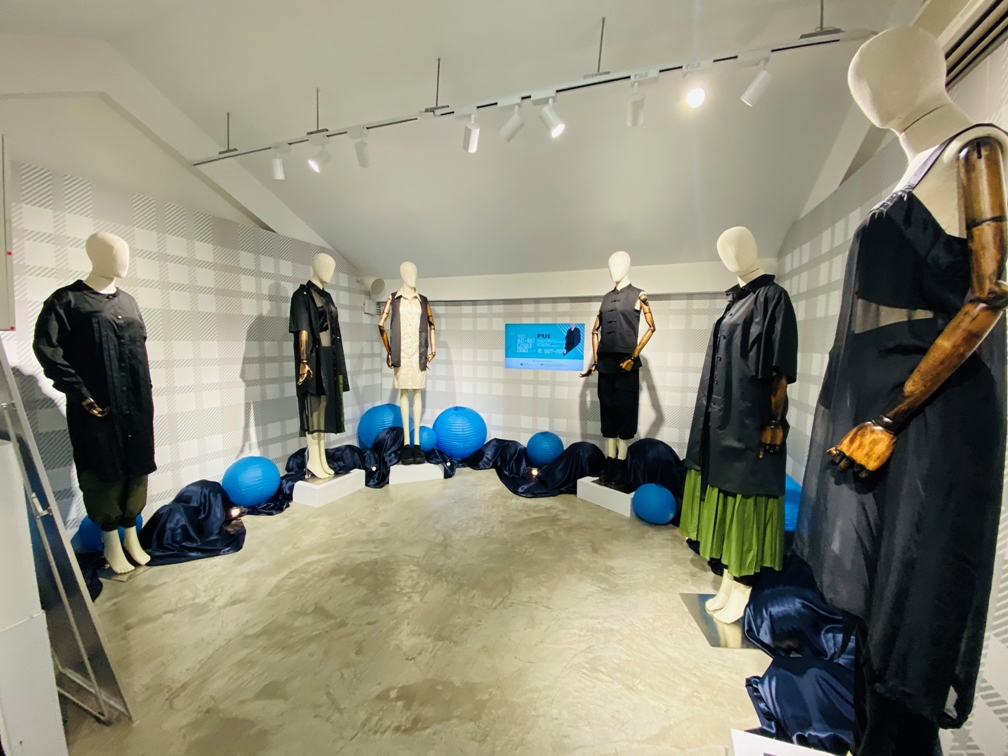 女裝品牌PUI由設計師譚雅婷於2019年創立,設計師透過今次展出的作品,帶出環保製衣、傳統工藝與文化傳承等概念。展覽作品靈感來自中國傳統文化的周易思想,使用了五行當中的“水”為設計概念,以中國傳統文化與現代服裝相結合,演繹出是次展覽“五行欠水”的獨特主題。