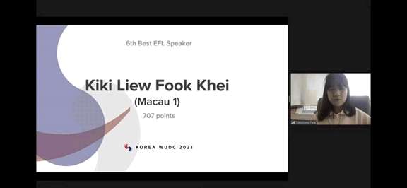 世界大學辯論賽是現時世界上最大且競爭最激烈的賽事,今屆賽事由韓國主辦。受疫情影響,是次賽事以線上方式進行,吸引370多支來自劍橋大學、芝加哥大學、杜克大學、多倫多大學、新加坡國立大學等世界名校的隊伍參賽。九輪比賽的辯題包括韓國政治、媒體、環保運動、電子競技、商業、宗教、毒品戰爭等,參賽選手只有15分鐘準備一項辯題,非常考驗參賽者的知識儲備量、獨立思考和臨場應變能力。在與多支頂級隊伍激烈競爭後,由澳門大學榮譽學院、科技學院和紹邦書院三年級生劉福琪及社會科學學院二年級研究生李佳能所組成的澳大代表隊的總積分達到16分,成為中國高校唯一進入淘汰賽的隊伍。劉福琪更以707高分榮獲全場比賽“十佳最佳辯手”之一。