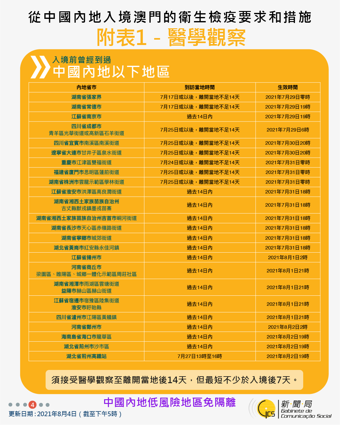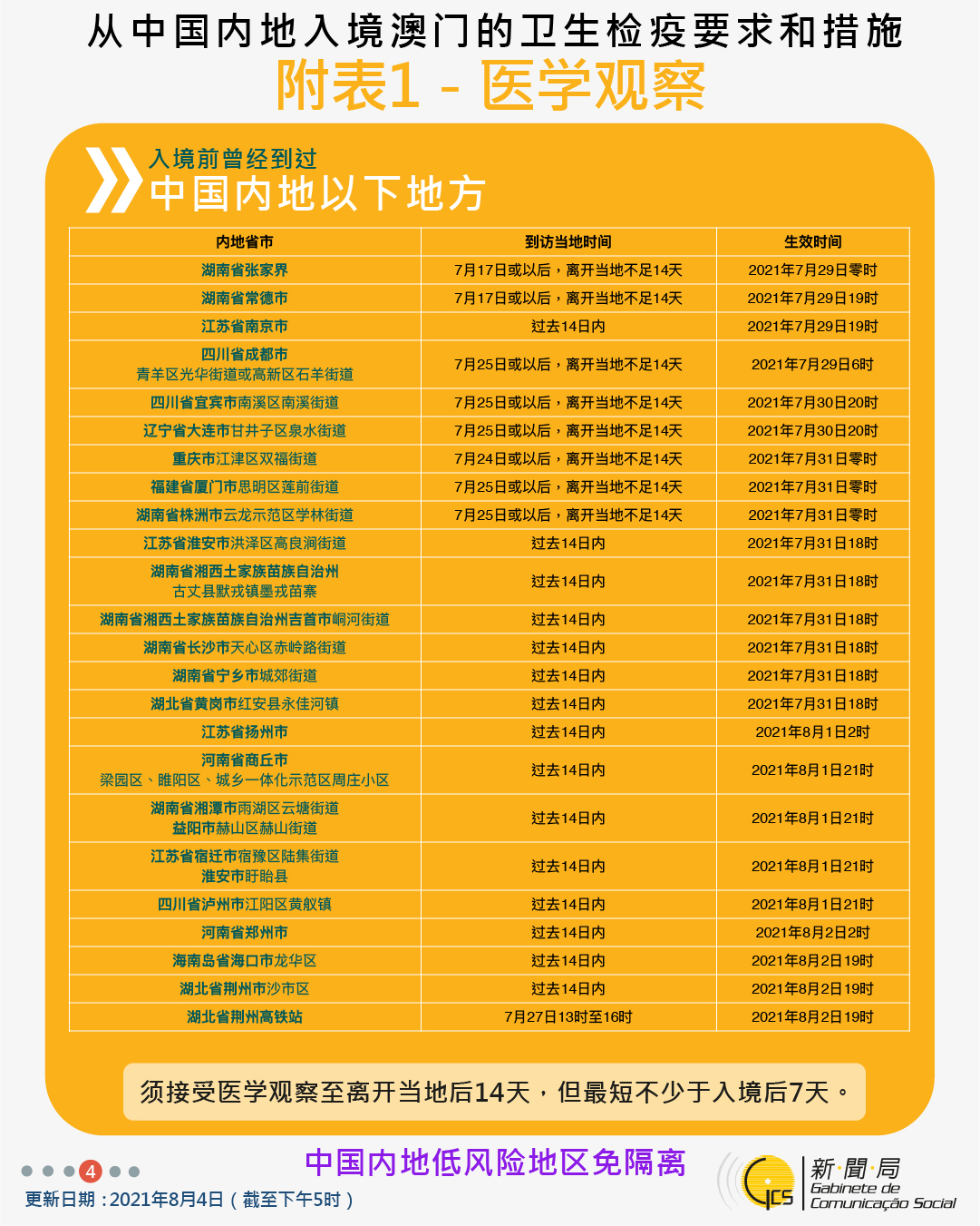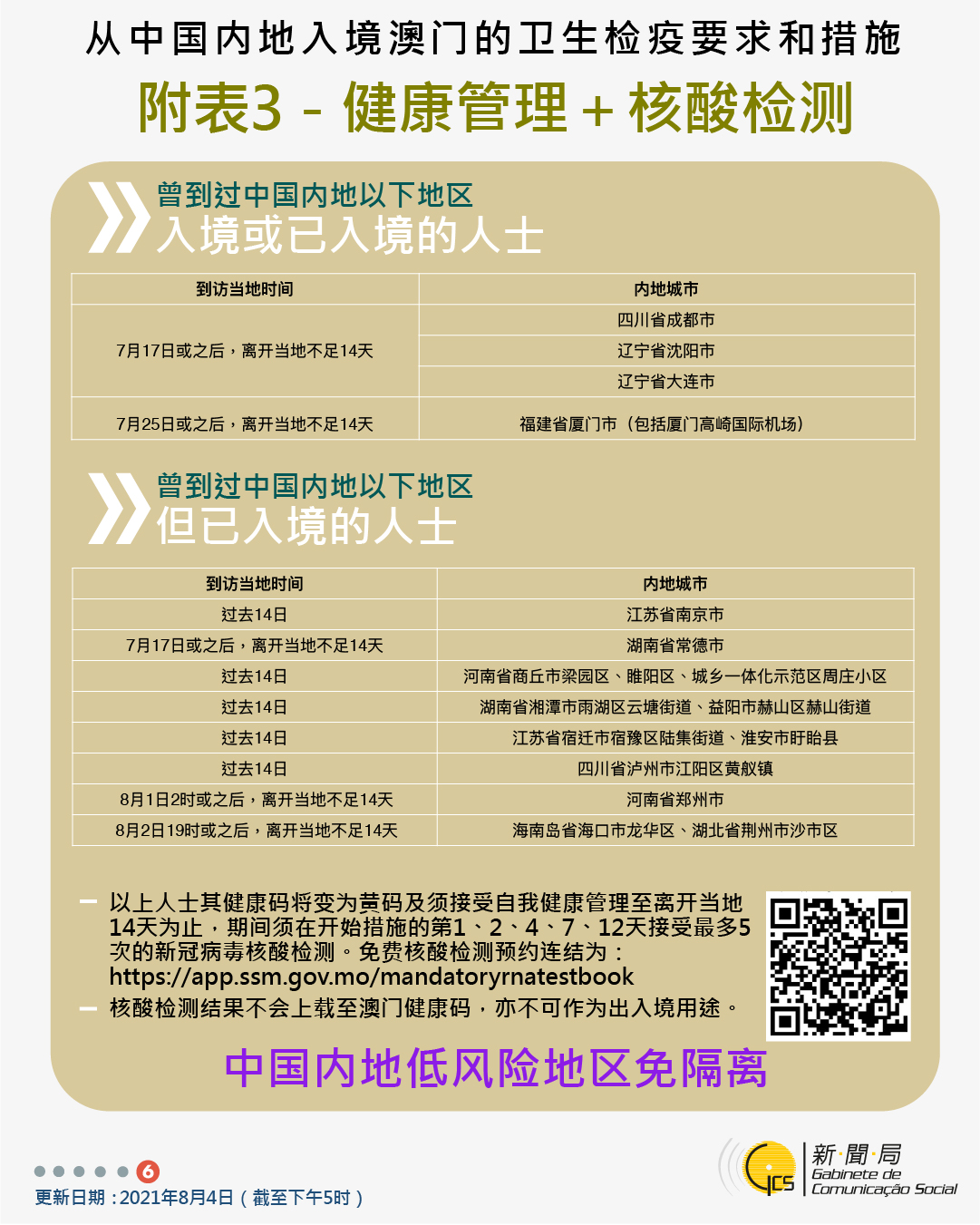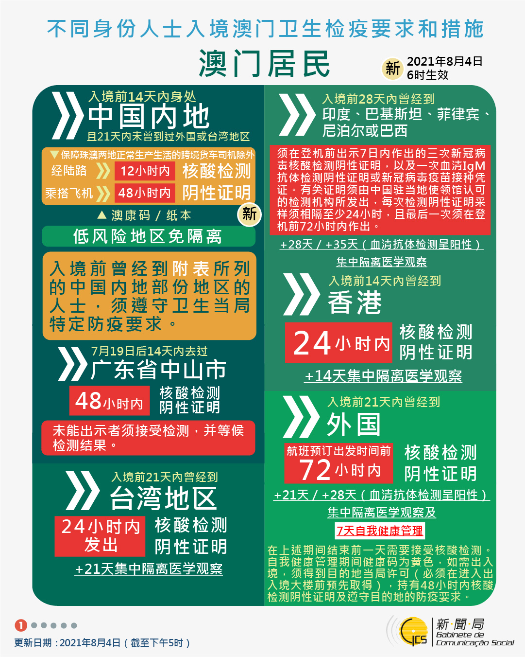【圖文包】2021/8/4最新入境澳門衛生檢疫要求和措施