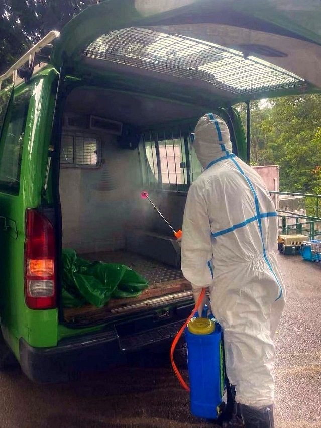 目前,路環市政狗房設有可用作疫情支援備用的特定動物隔離檢疫區,市政署亦為接觸及處理相關個案的人員配備適當防護裝備,以及依照衛生局的防疫指引及步驟對環境、設備及個人採取相應的清潔消毒措施,以防病毒污染其他區域及傳播。