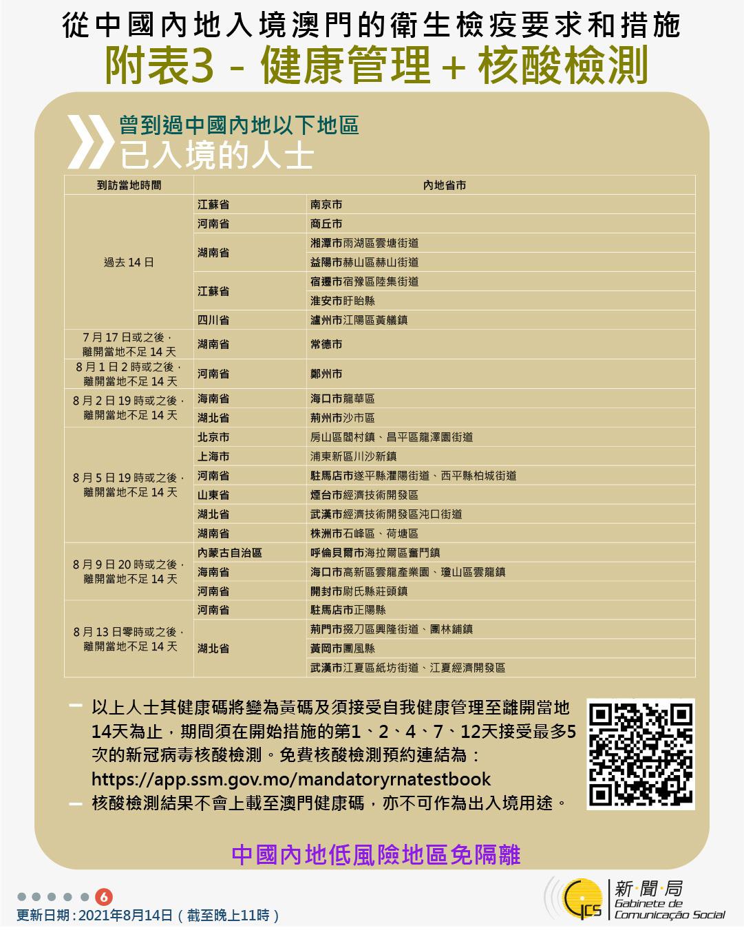 【圖文包】2021/08/14最新入境澳門衛生檢疫要求和措施
