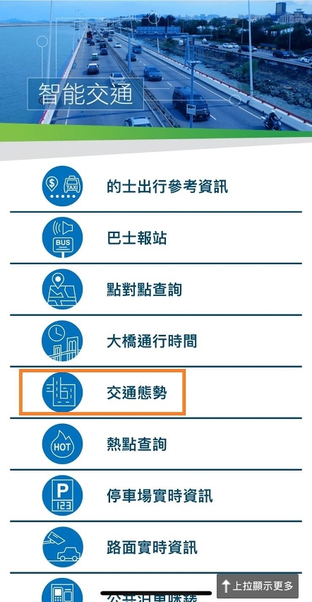 此外,局方亦已分別在微信服務號的智能交通欄位,以及在巴士報站APP設置“交通態勢”,方便市民查詢實時路況。