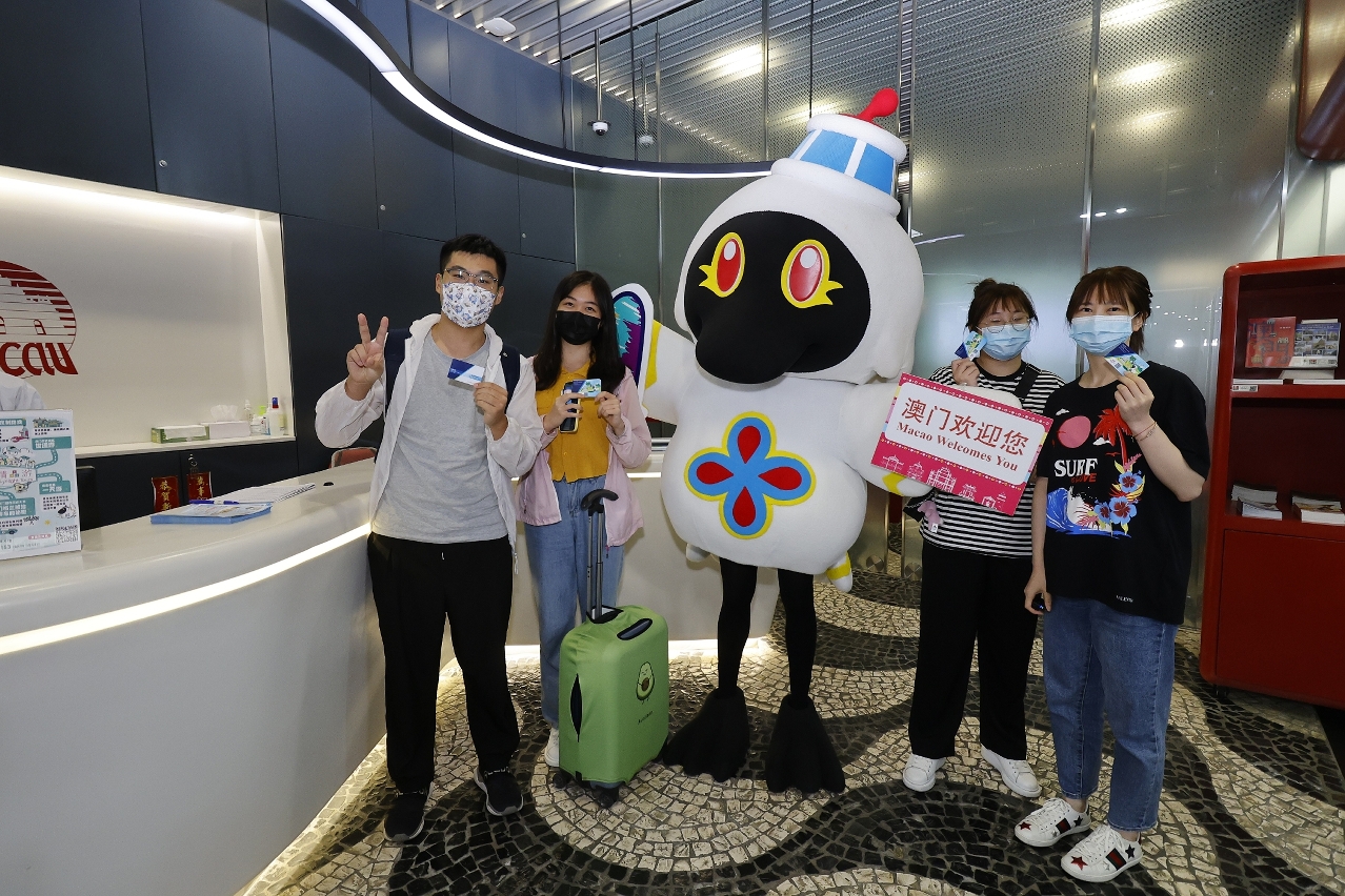 昨日6航班抵澳,吉祥物“麥麥”熱情歡迎旅客