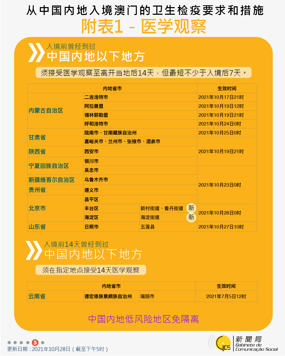 【圖文包】2021/10/28最新入境澳門衛生檢疫要求和措施