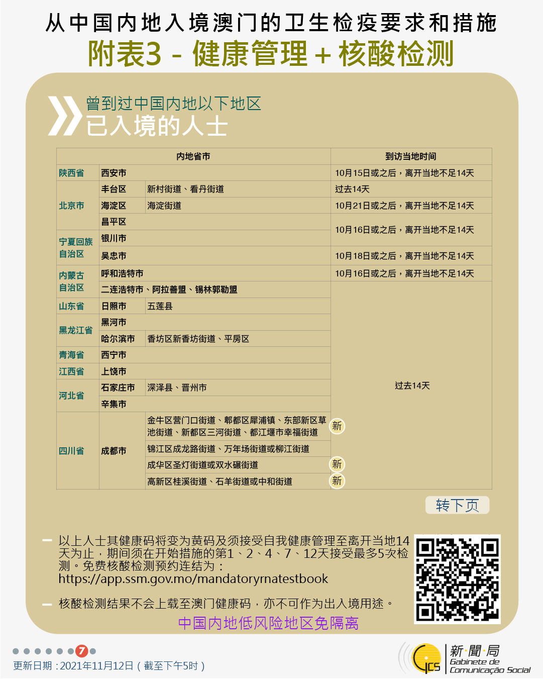 【圖文包】2021/11/12最新入境澳門衛生檢疫要求和措施