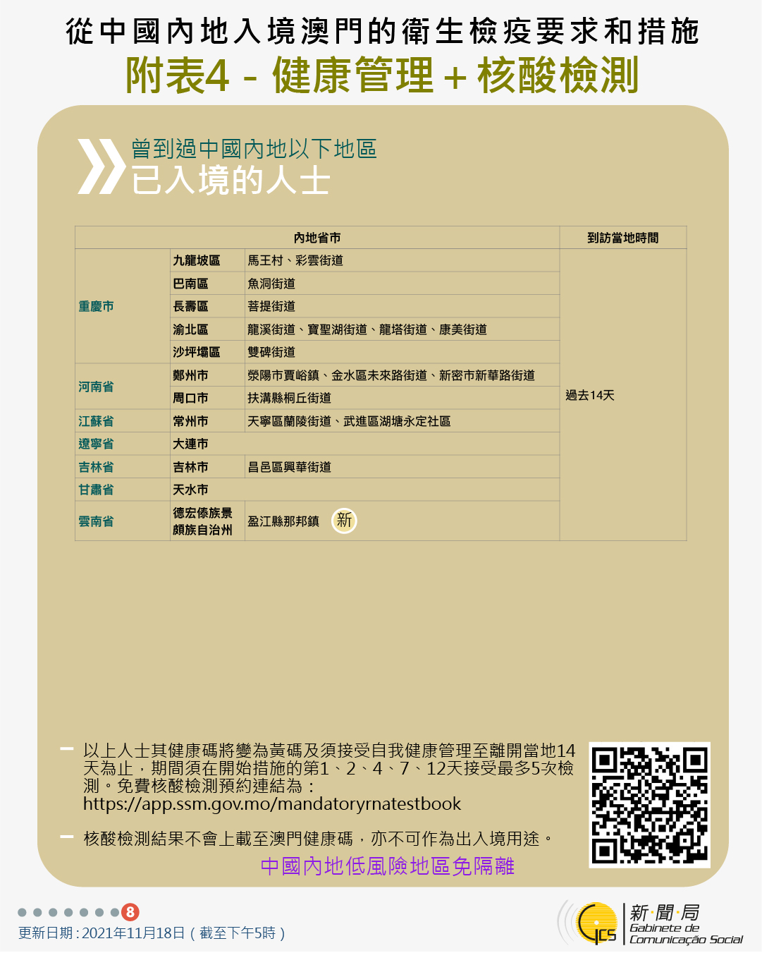 【圖文包】2021/11/18最新入境澳門衛生檢疫要求和措施
