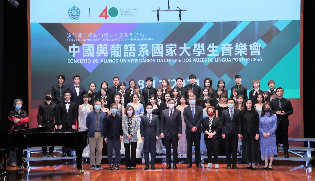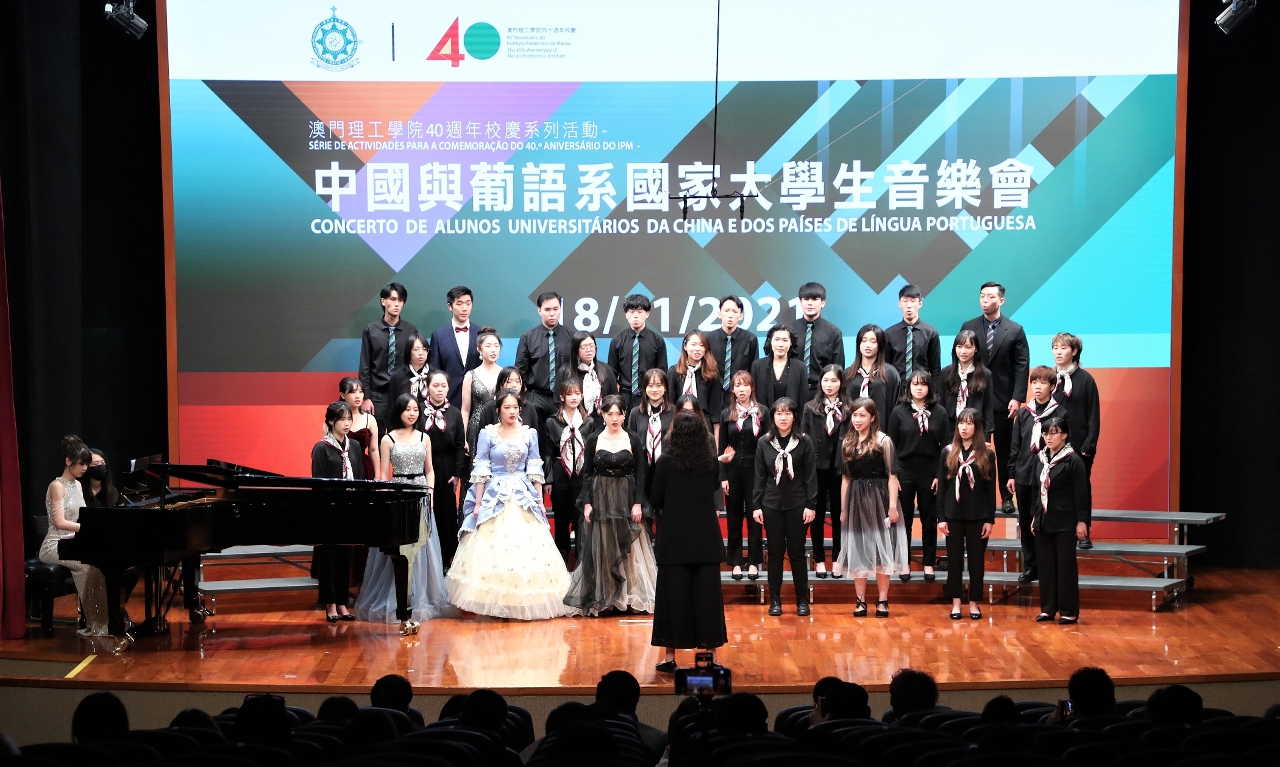 “中國與葡語系國家大學生音樂會”在澳門理工學院禮堂舉行,由澳門特區政府教育及青年發展局副局長丁少雄、東方葡萄牙學會會長夏祖堯(Joaquim Coelho Ramos)、澳門葡人之家協會主席安瑪莉(Maria Amélia António)、澳門理工學院院長嚴肇基、秘書長李惠芳、藝術高等學校代校長黎明海、學生會理事長錢珮茵、校友會理事長黃宇棋及音樂課程副教授梁詠茜主禮,音樂會並向葡語系國家及地區及大灣區同步直播。澳門理工學院致力搭建中葡文化交流平台,助力推進澳門成為中葡文化交流中心。隨著粵港澳大灣區合作的深入推進,澳理工也逐步把中葡文化的交流成果帶進“人文灣區”的建設中。是次音樂會匯聚大灣區和葡語系國家高校共同參與,由北京師範大學、葡萄牙雷利亞理工學院、巴西塔夸里大學、佛得角大學,以及澳門理工學院學生聯合演出。